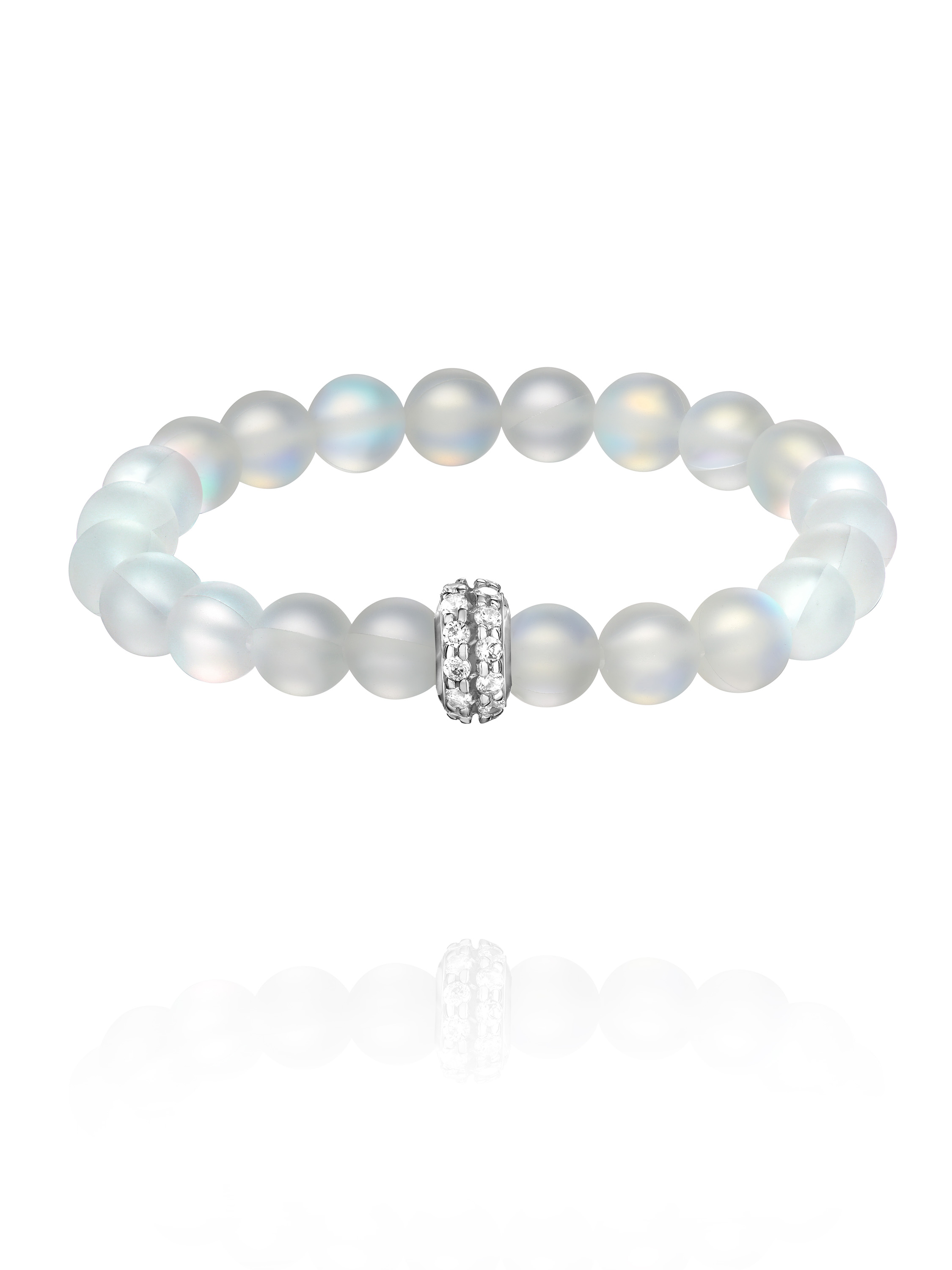 Bracelet in 925 sterling silver with round-cut cubic zirconia, 24 moonstone beads weighing 17.54 g. Bead diameter: 8 mm.