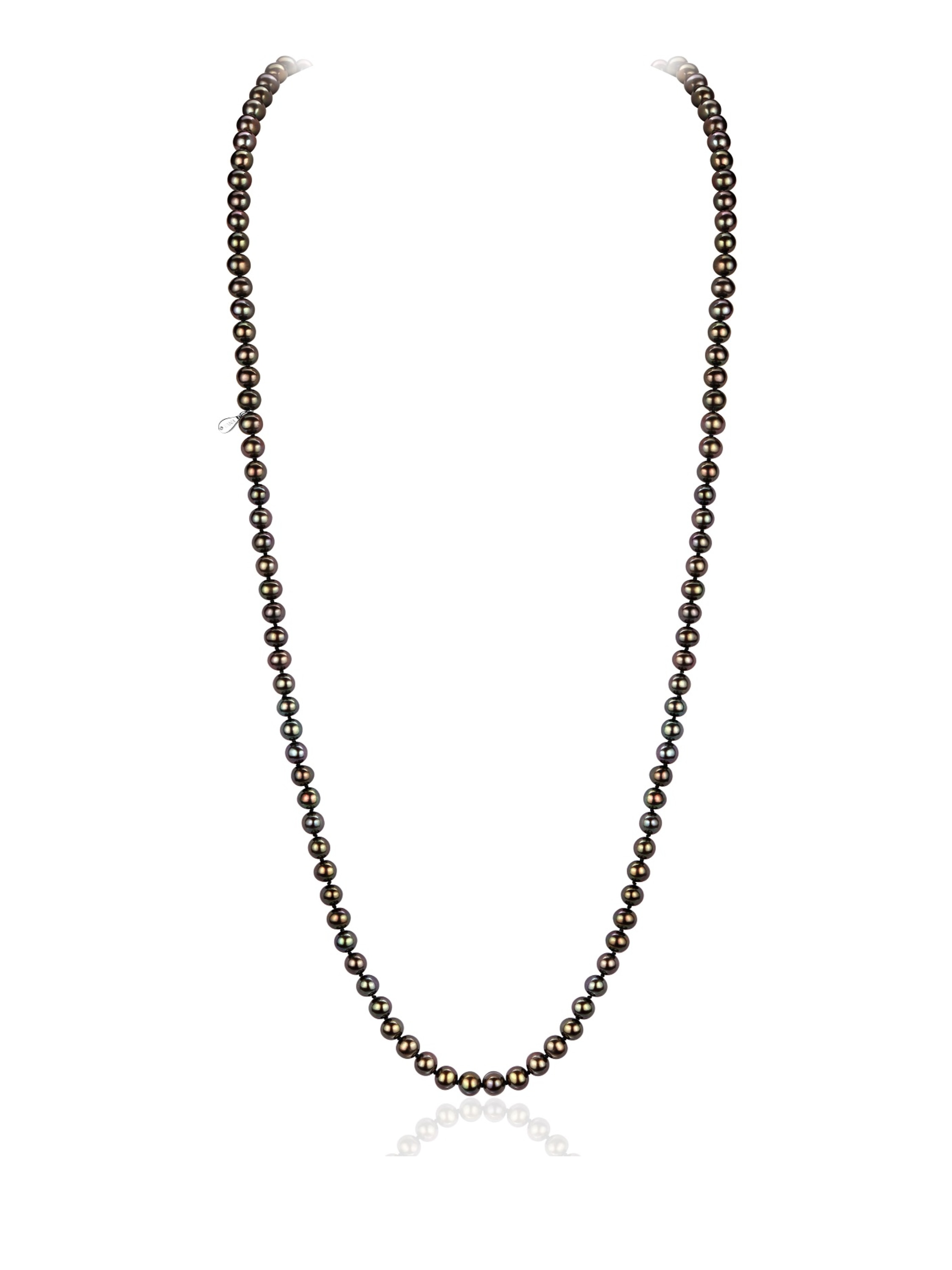 Necklace with 115 chocolate-colored pearls 57.42 g d 7.0-7.5 and a silver tag with cubic zirconia 0.01 g.