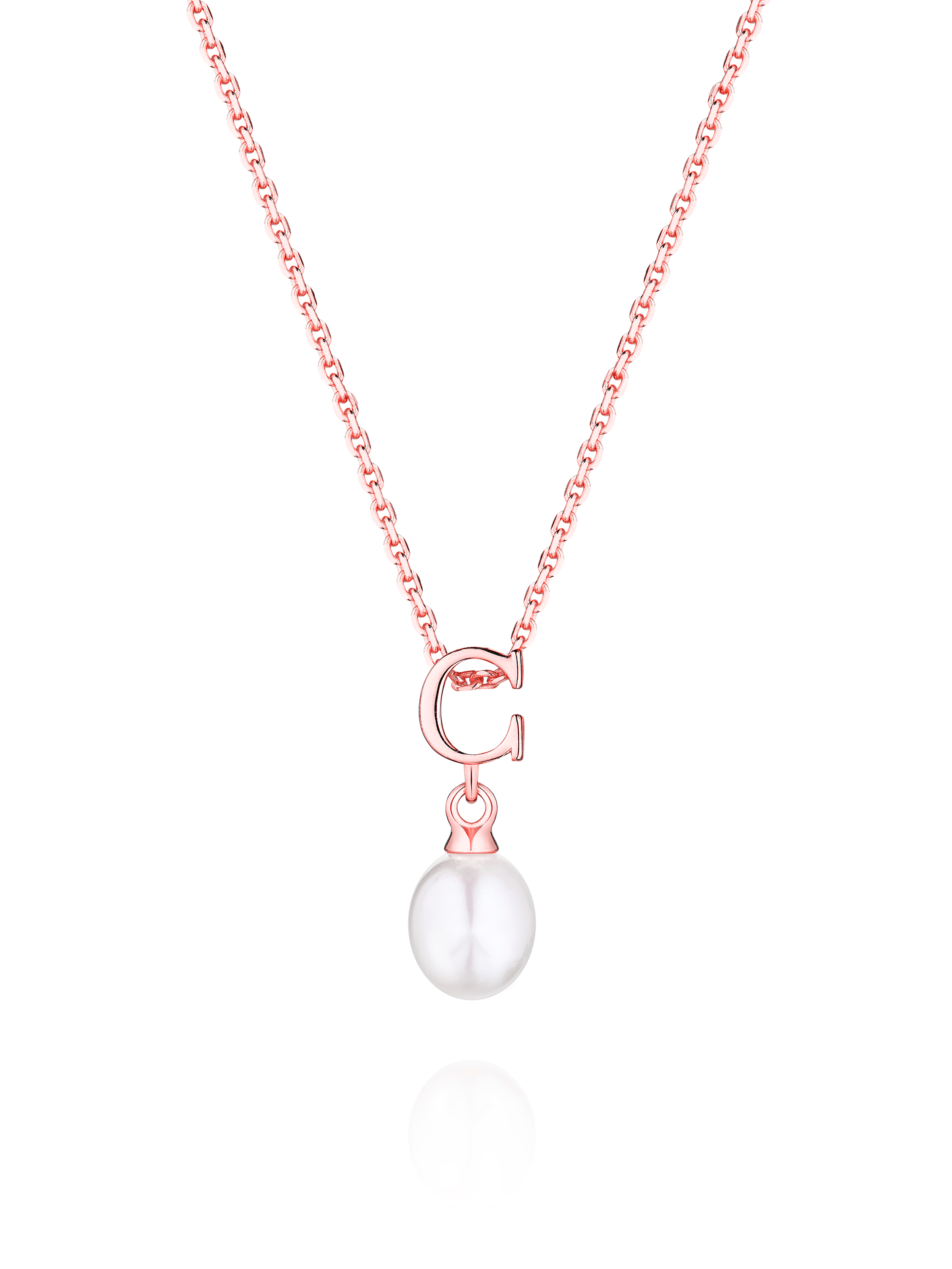 Gold-plated silver necklace with letter C pendant and pearl