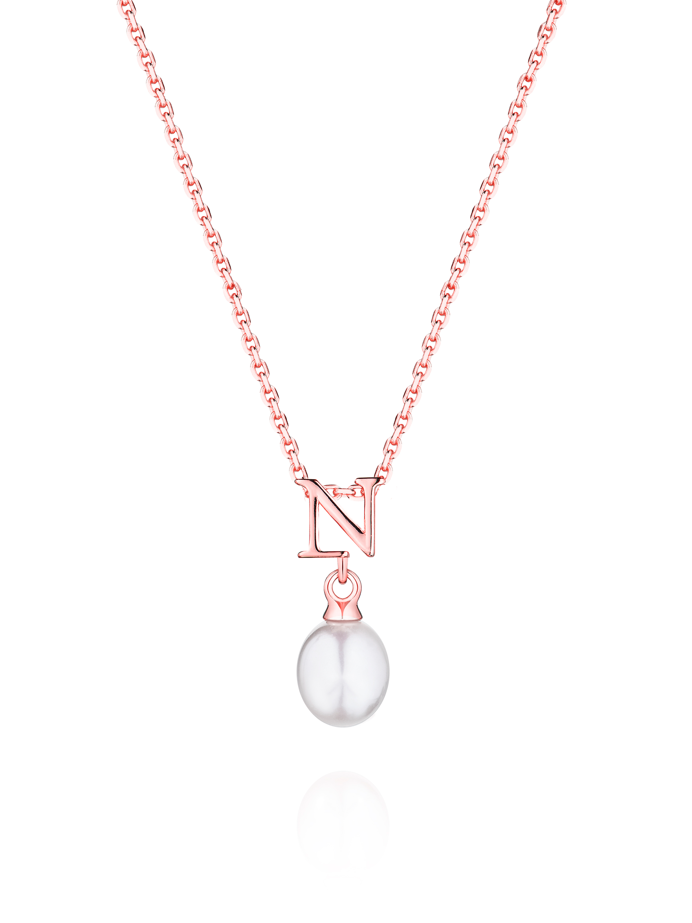 Gold-plated silver necklace with a pendant with the letter N and a pearl