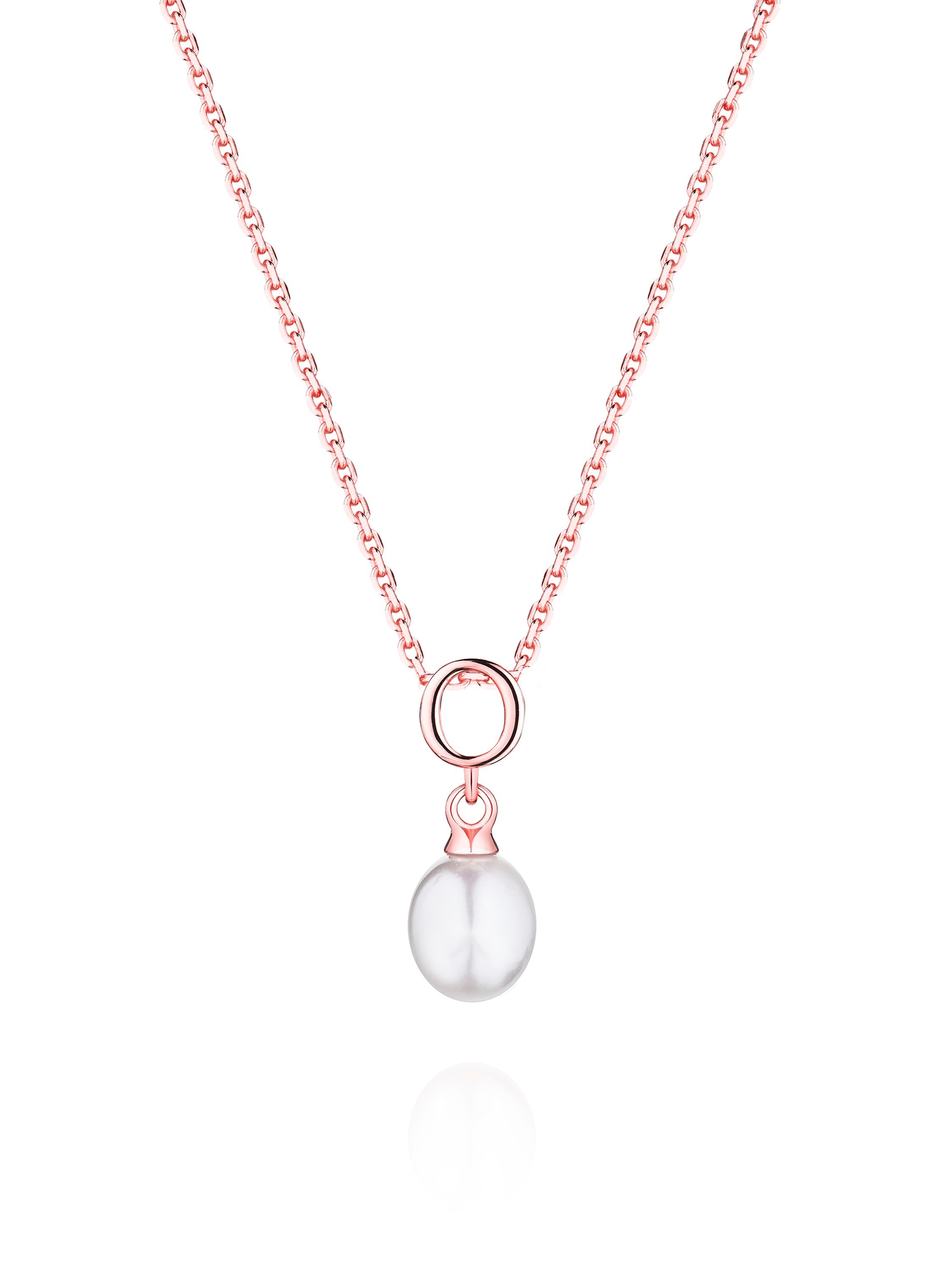 Necklace made of 925 gold-plated silver with a pendant with the letter "O" and white pearl weighing 0.95 g.