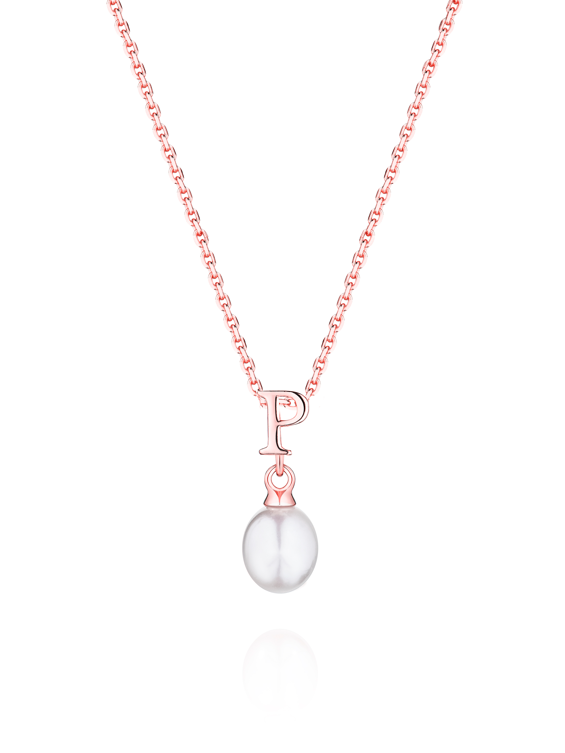Gold-plated silver necklace with a pendant with the letter P and a pearl