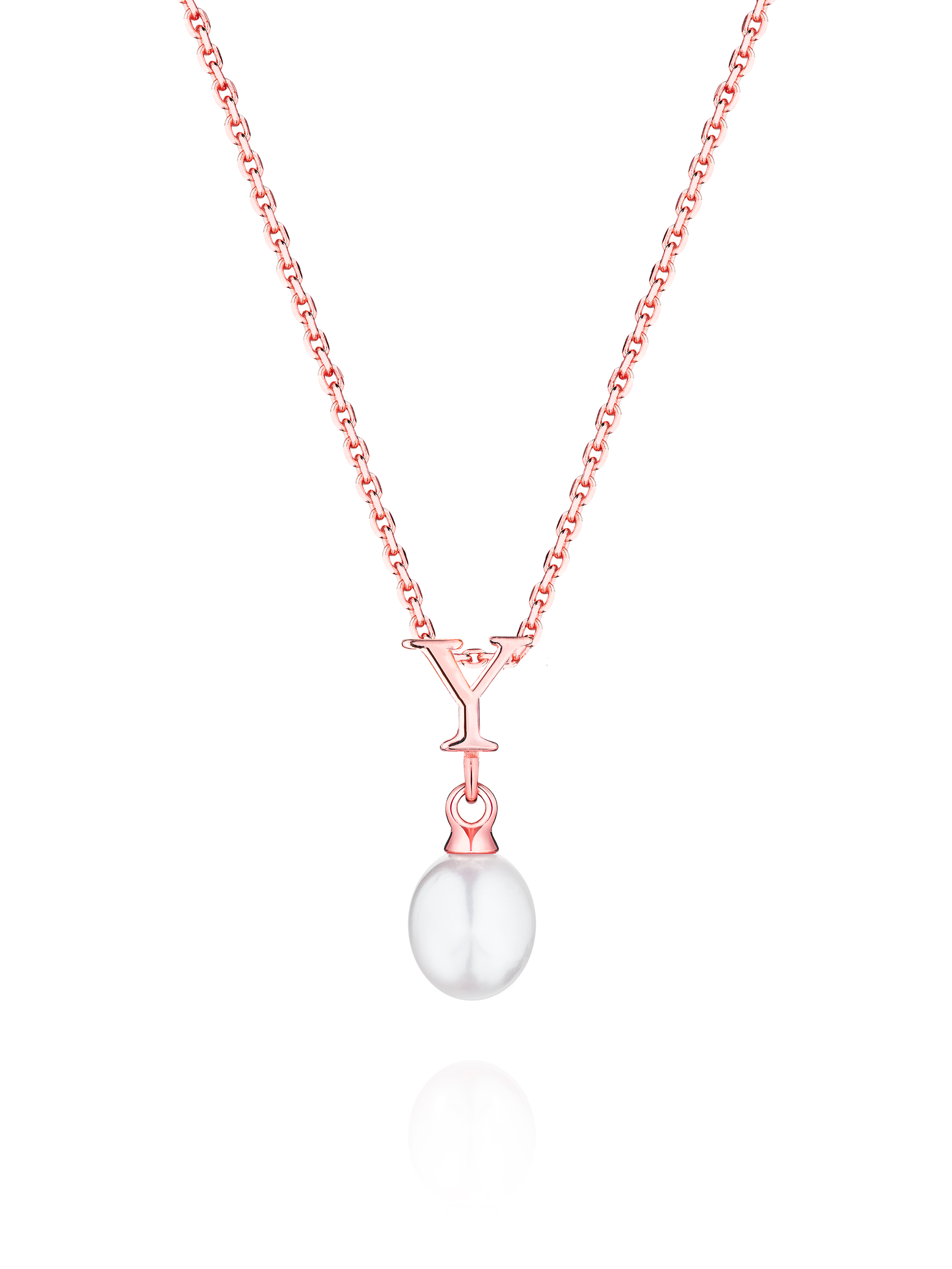 925 sterling silver gold-plated necklace with a letter "Y" pendant and white pearl weighing 0.95 g.