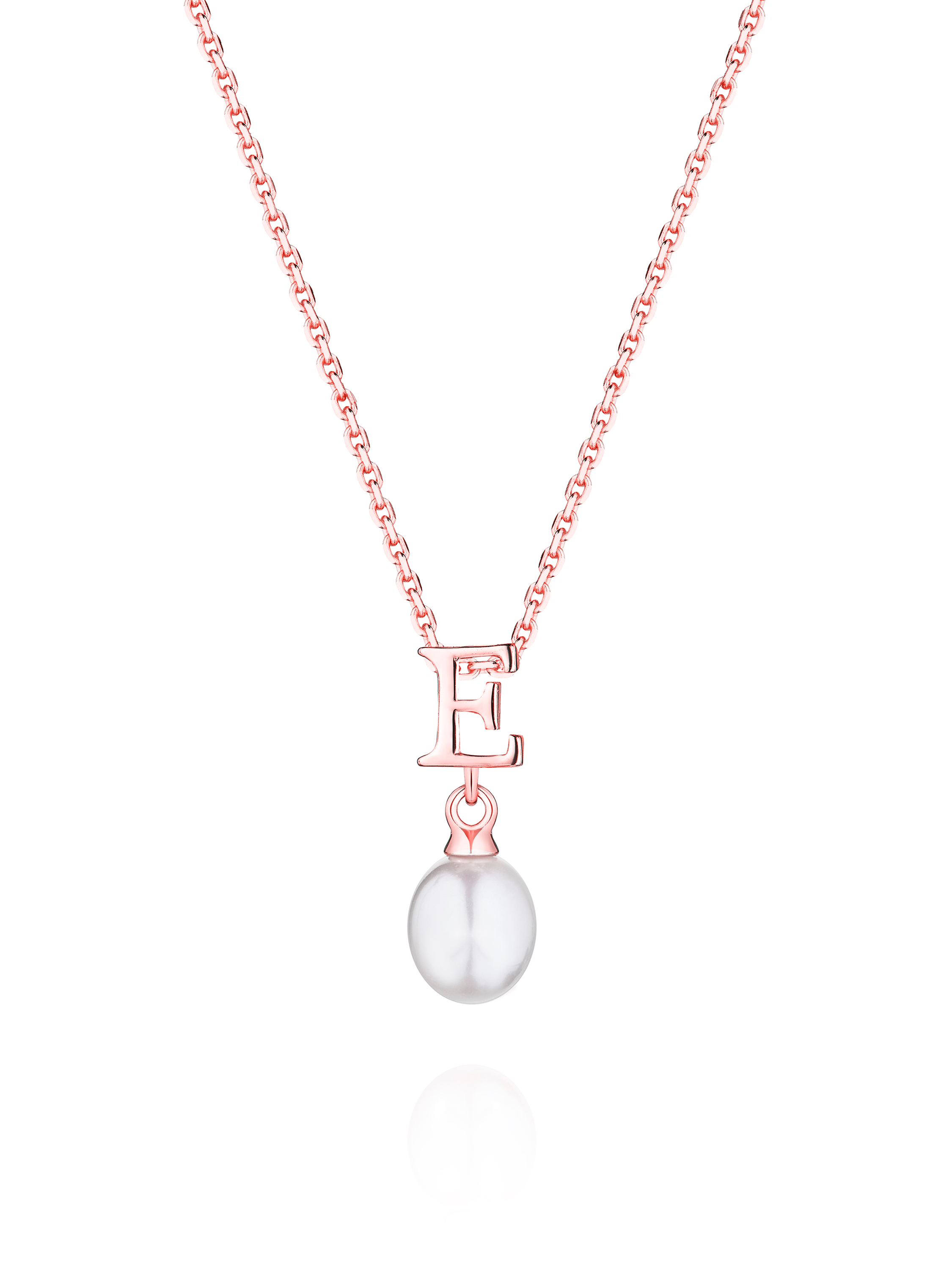 Gold-plated silver necklace with a pendant with the letter E and a pearl