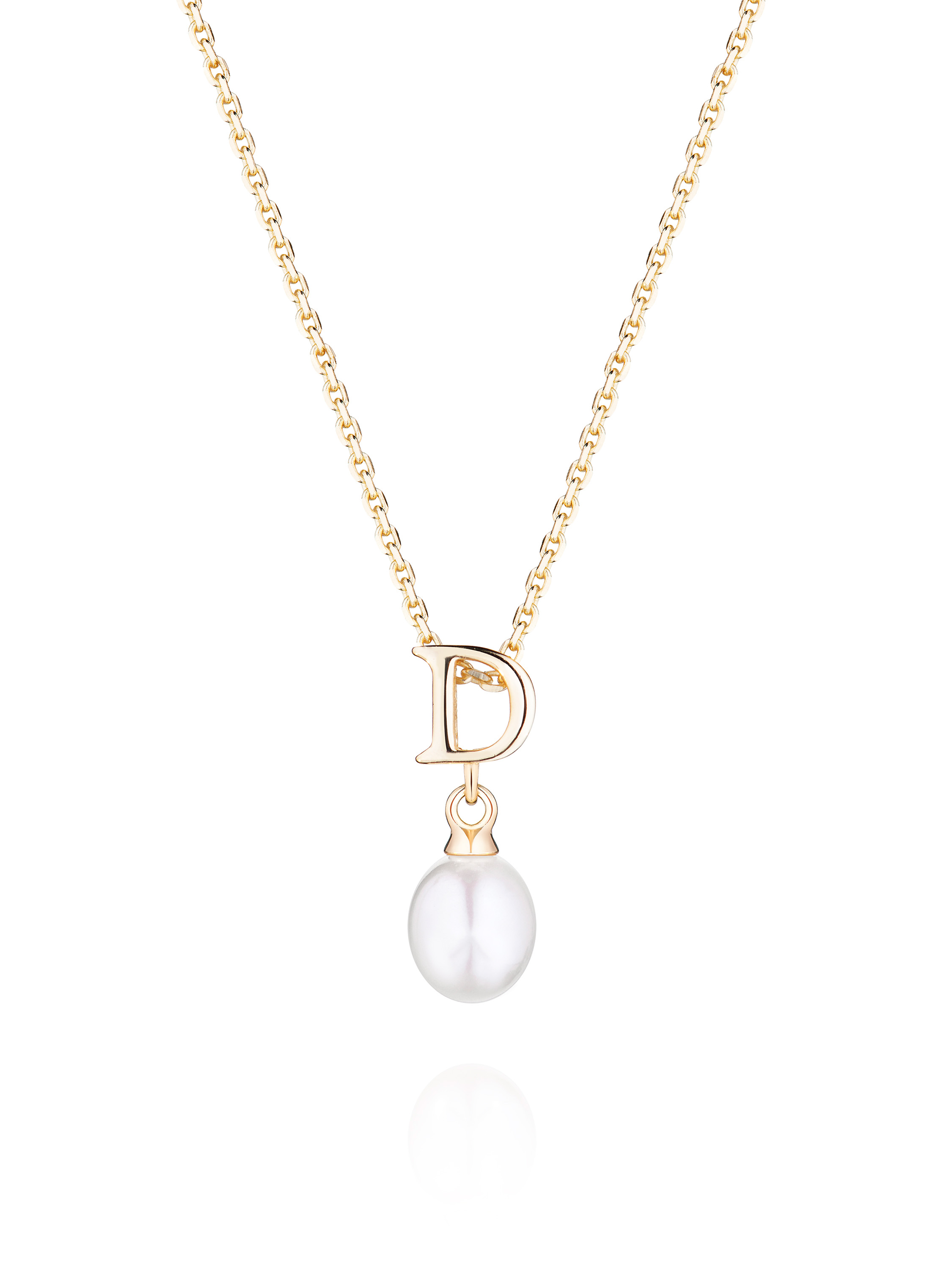 Gold-plated silver necklace with letter D pendant and pearl
