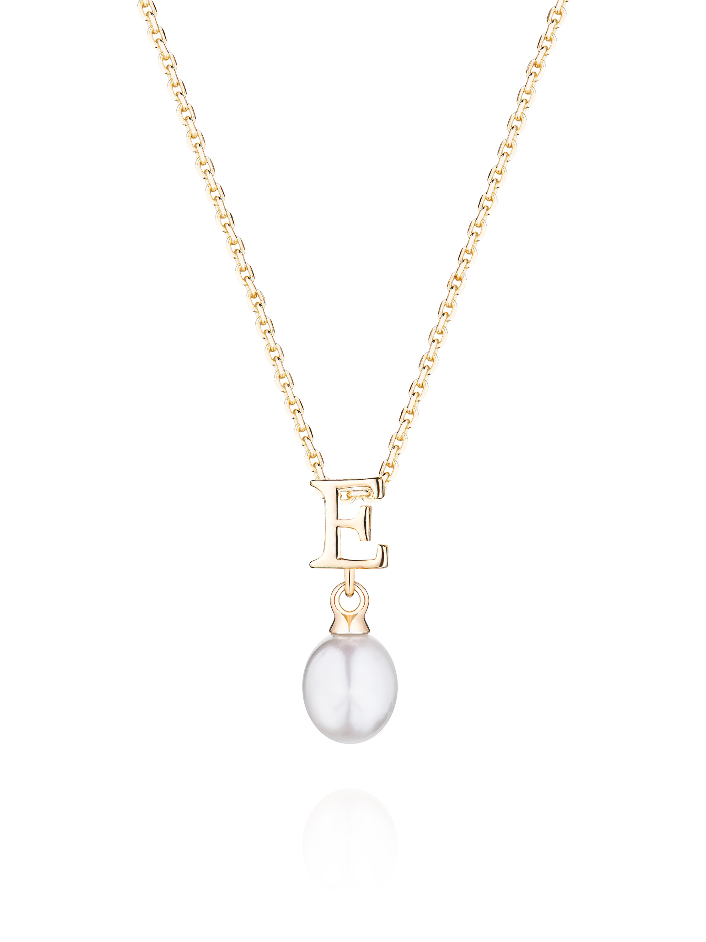 Gold-plated silver necklace with letter E pendant and pearl
