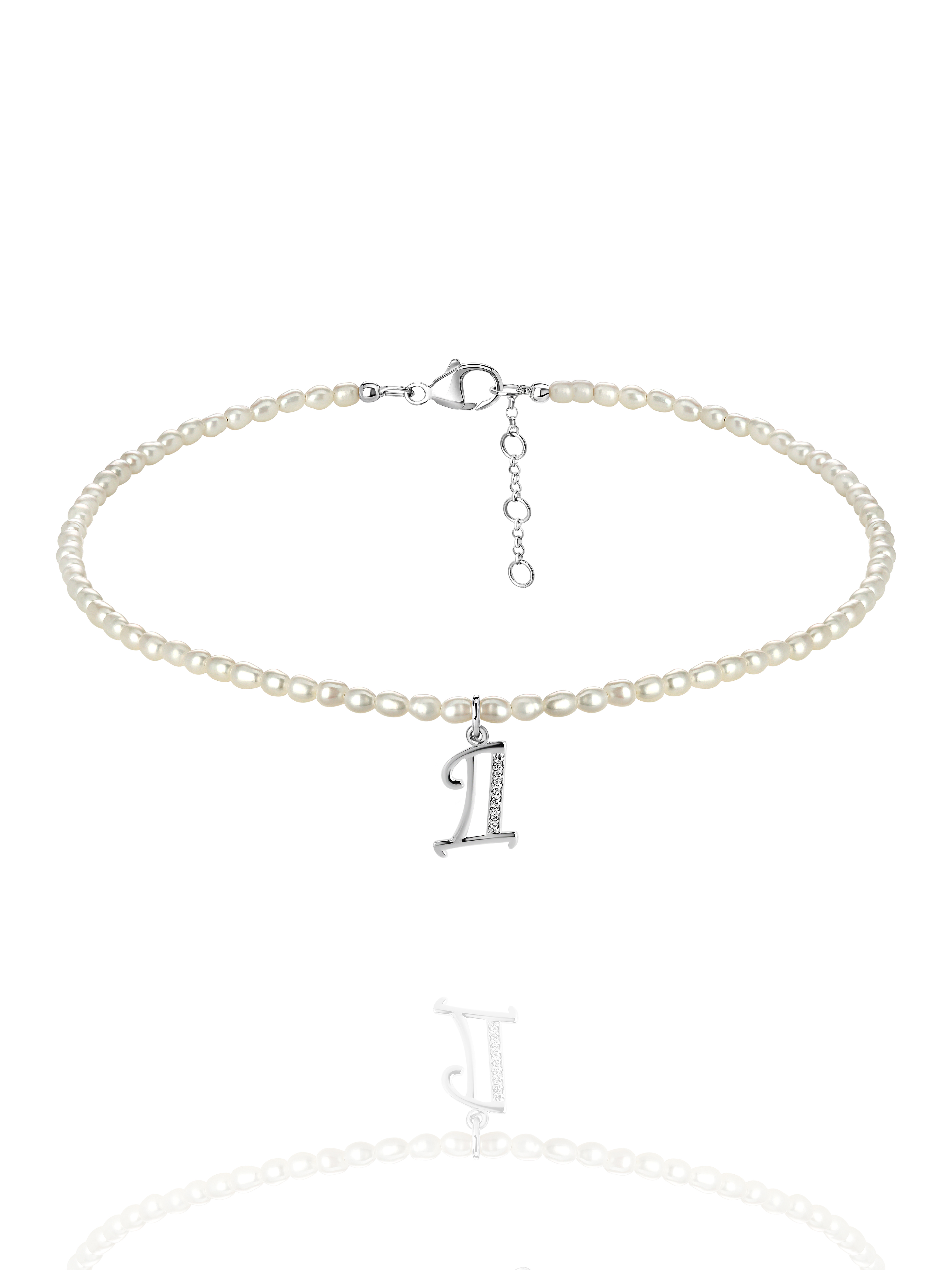 Pearls, Cubic Zirkonia & Silver "Д" Letter Choker
