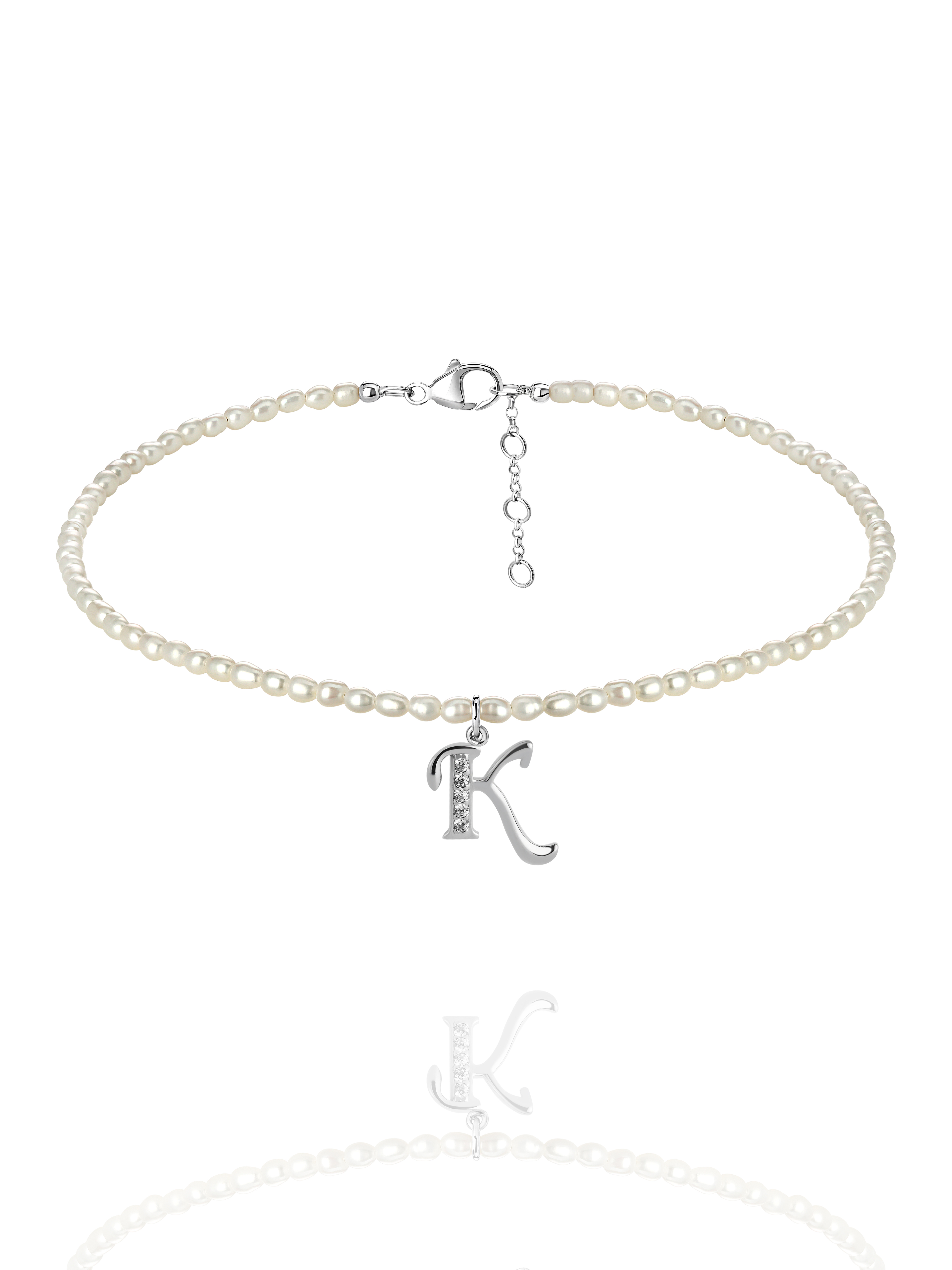 Pearls, Cubic Zirkonia & Silver "K" Letter Choker