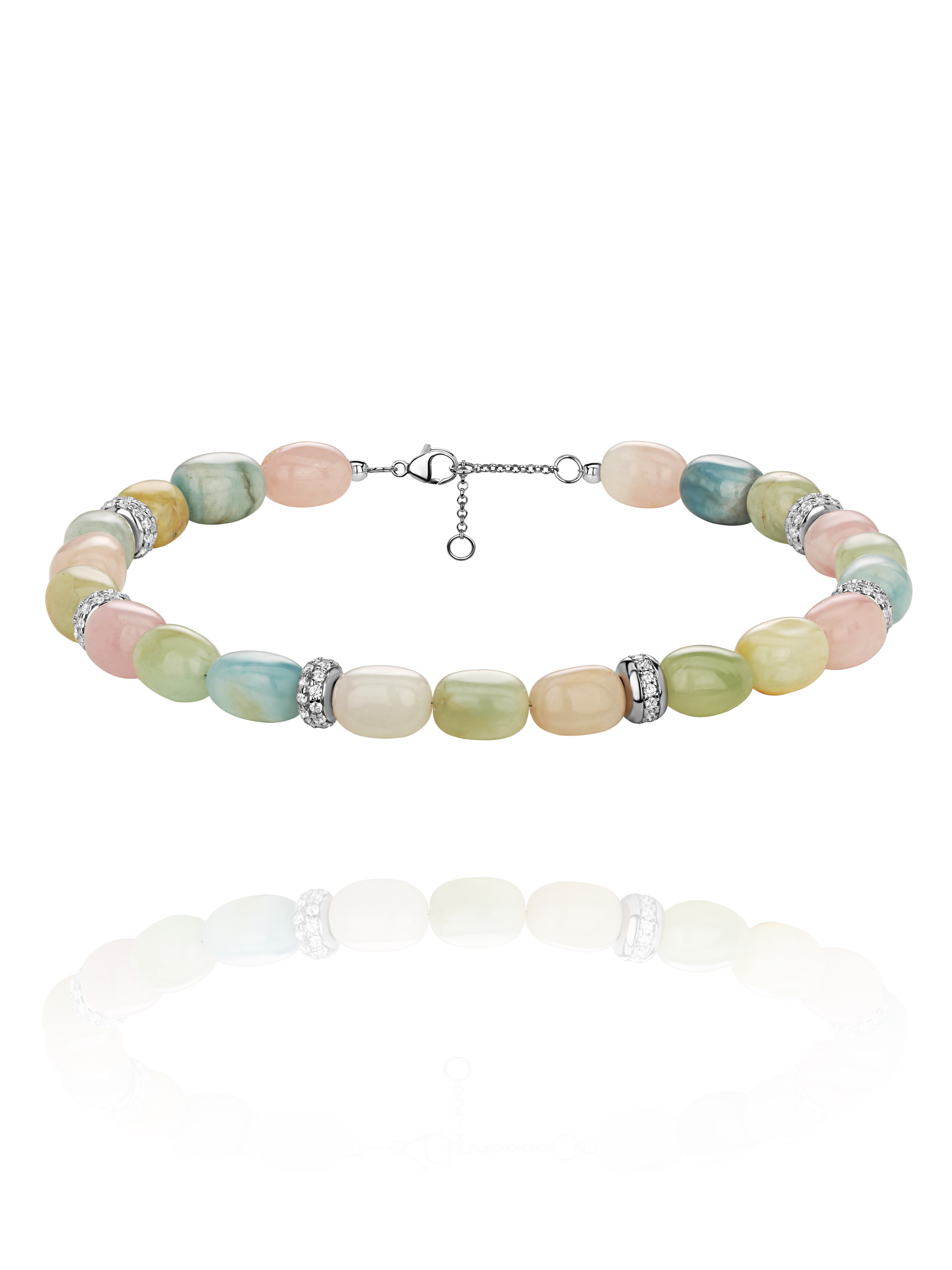 A necklace made of beryl with inserts in 925 sterling silver and 144 round-cut cubic zirconia.