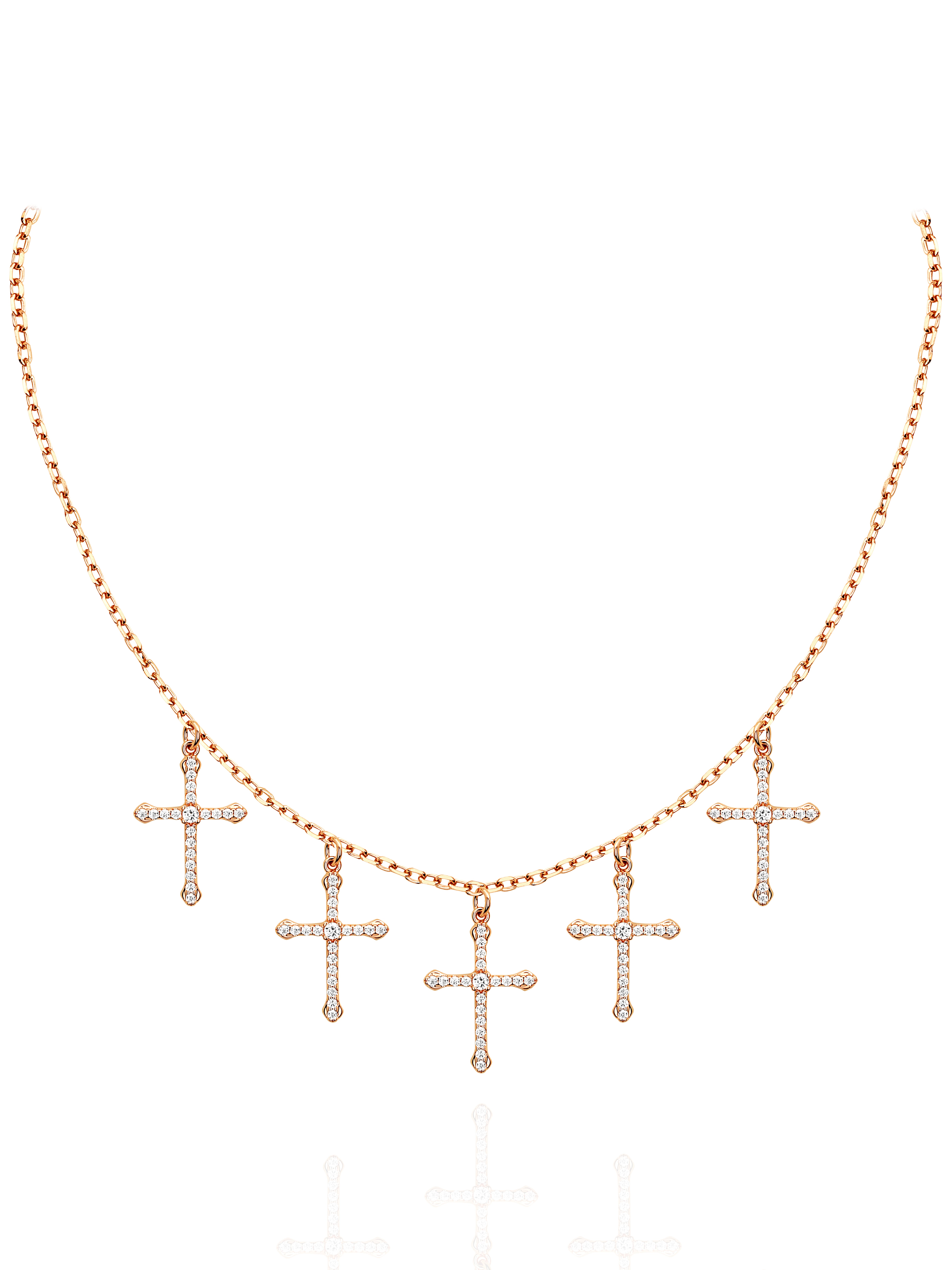 Necklace made of 925 rose silver with crosses, inlaid with 100 round-cut cubic zirconia stones.