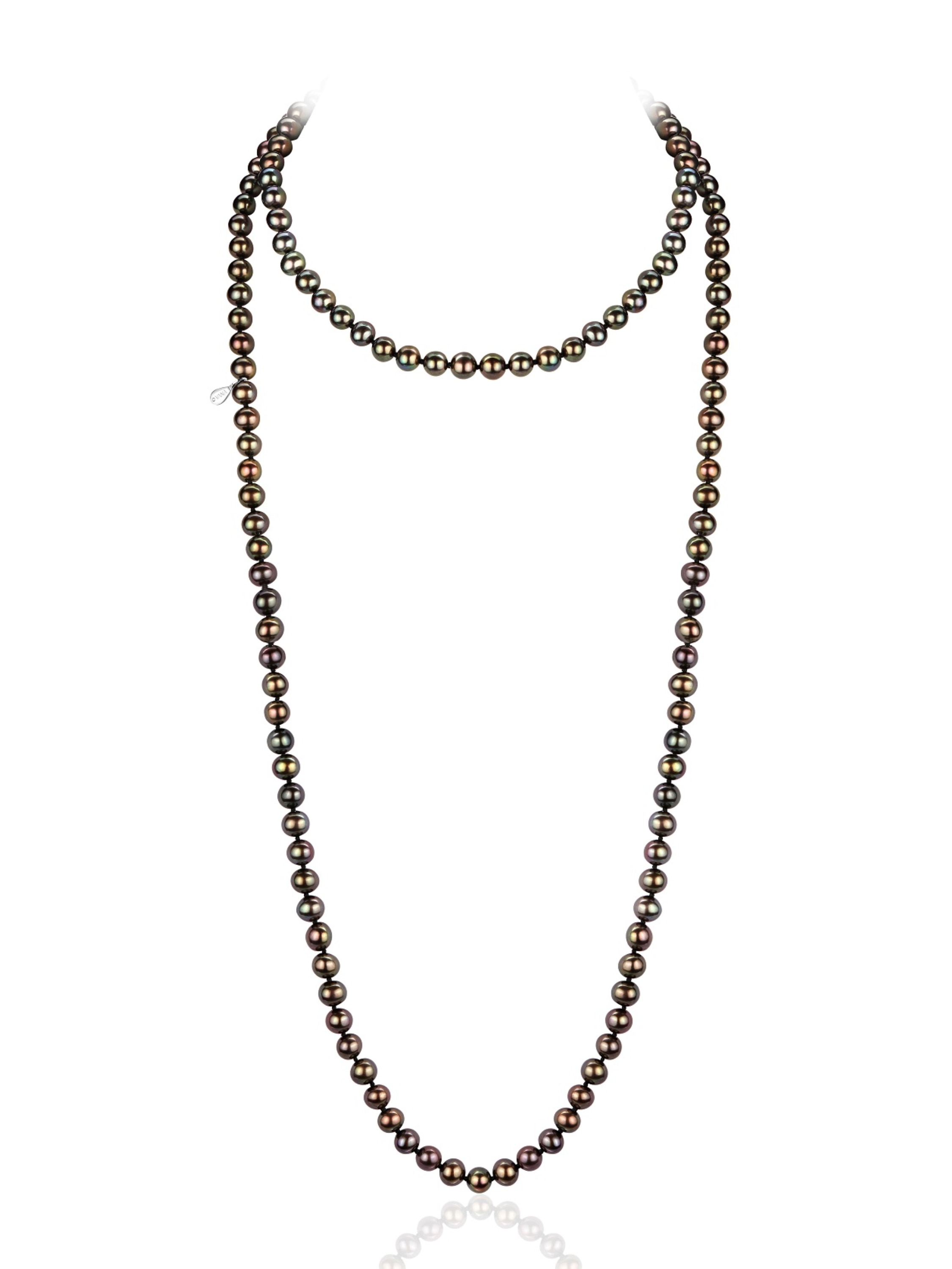 Silver necklace with 152 chocolate-colored pearls 78.53 g d 7.0-7.5 and a cubic zirconia on the tag 0.01 g. Product length: 120 cm.
