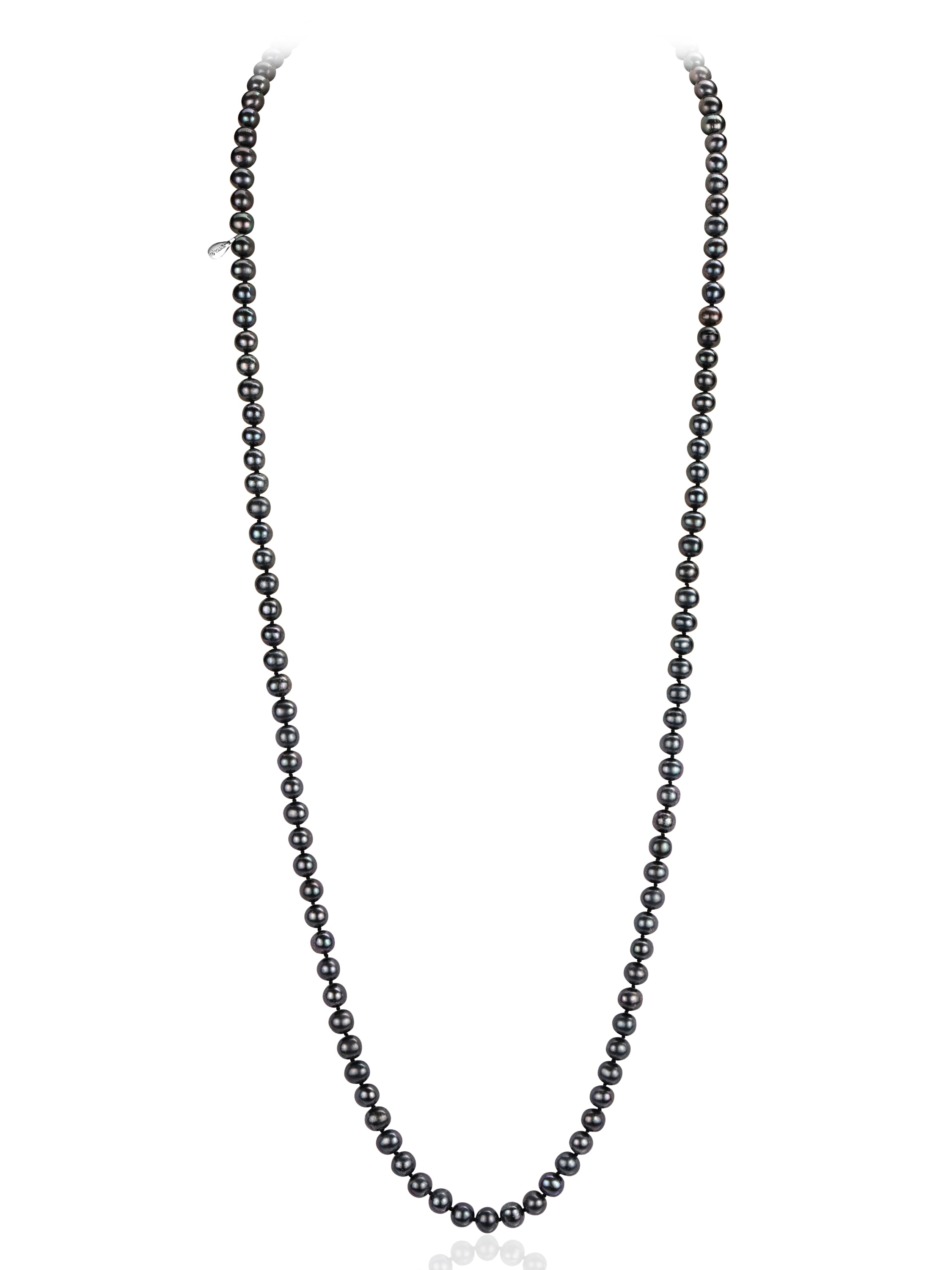 Silver necklace with black pearl beads, 85 cm