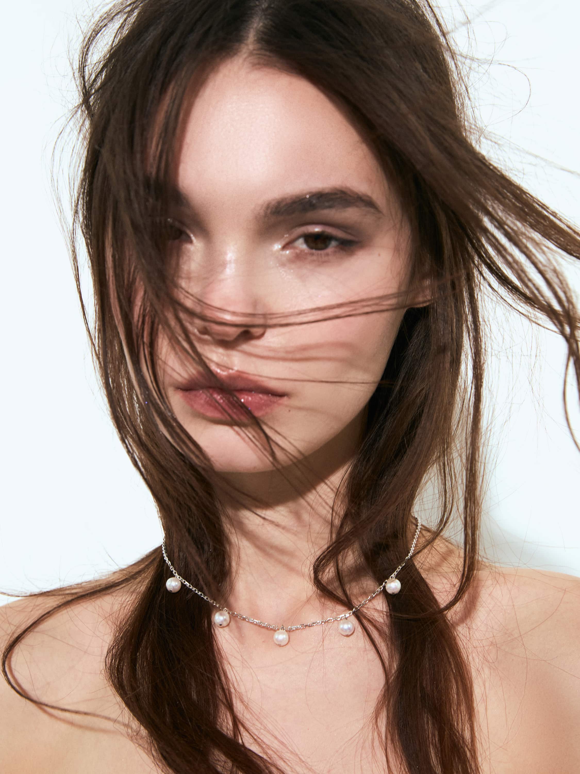 Silver necklace with pearls