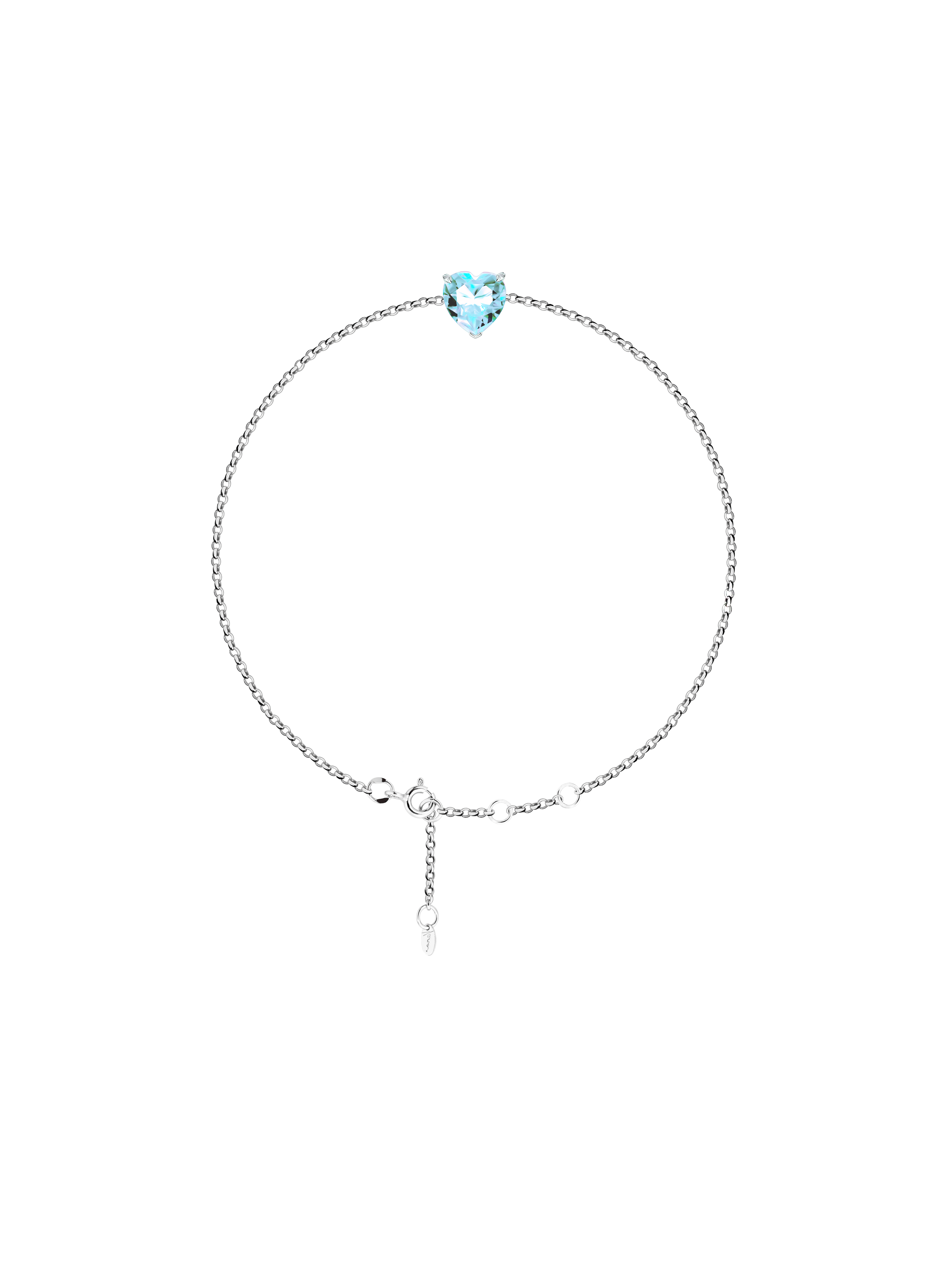 Silver bracelet with a blue cubic zirconia in a “heart” cut