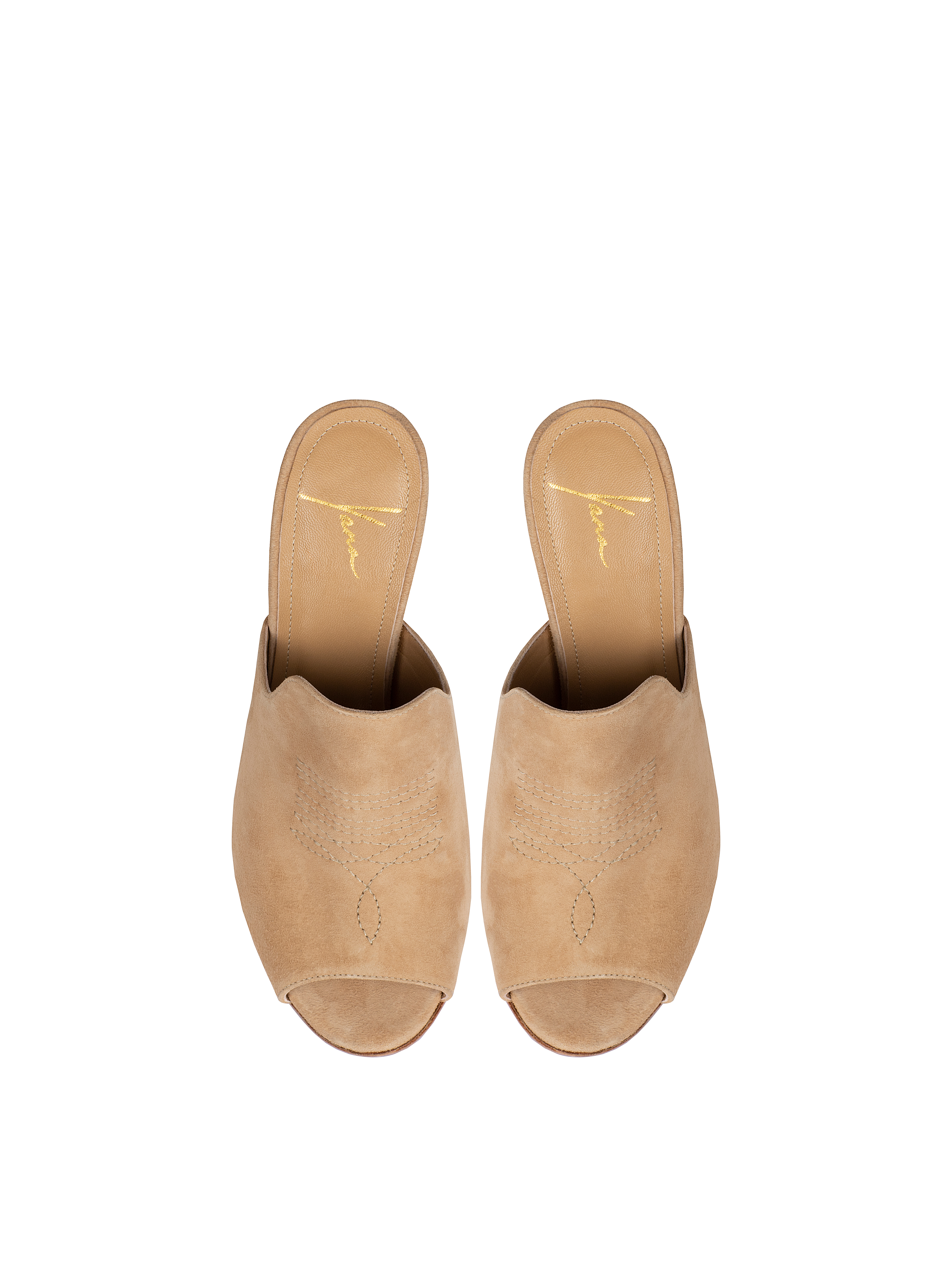 Beige Suede Heeled Mules