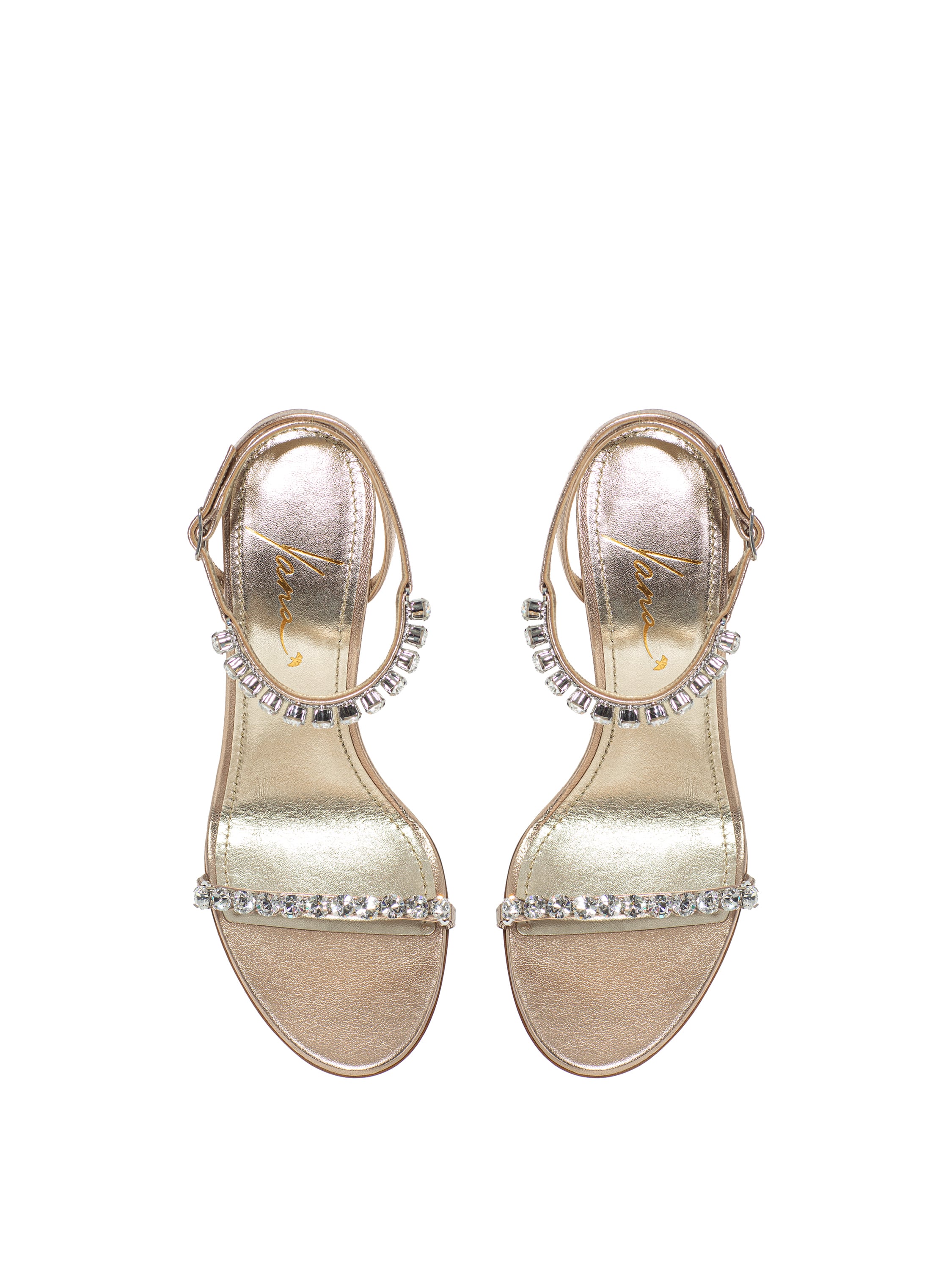 Bronze Leather Sandals With Rhinestones
