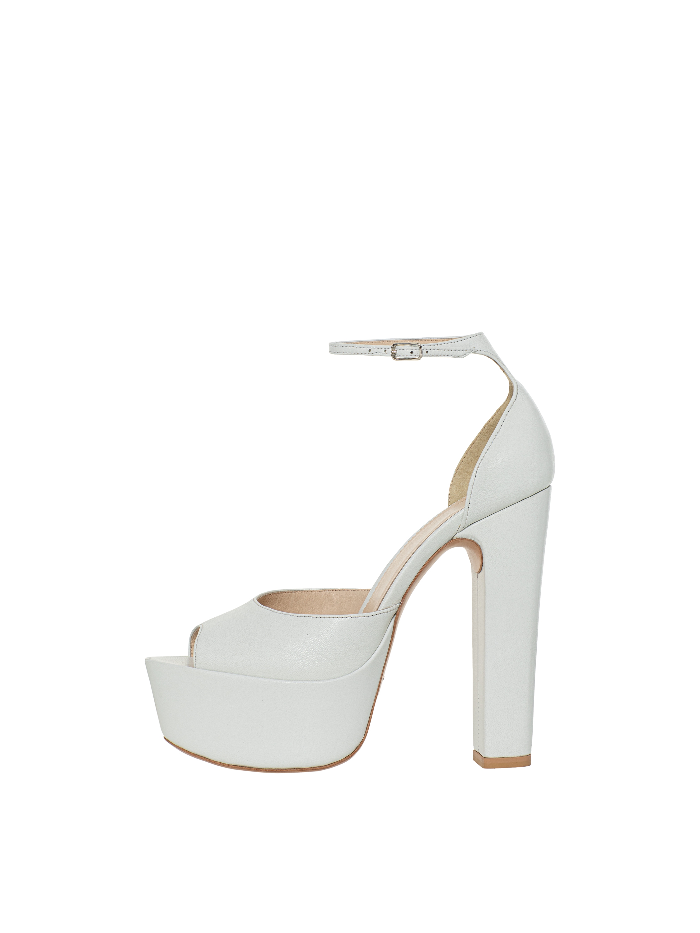 White leather sandals with a wide heel