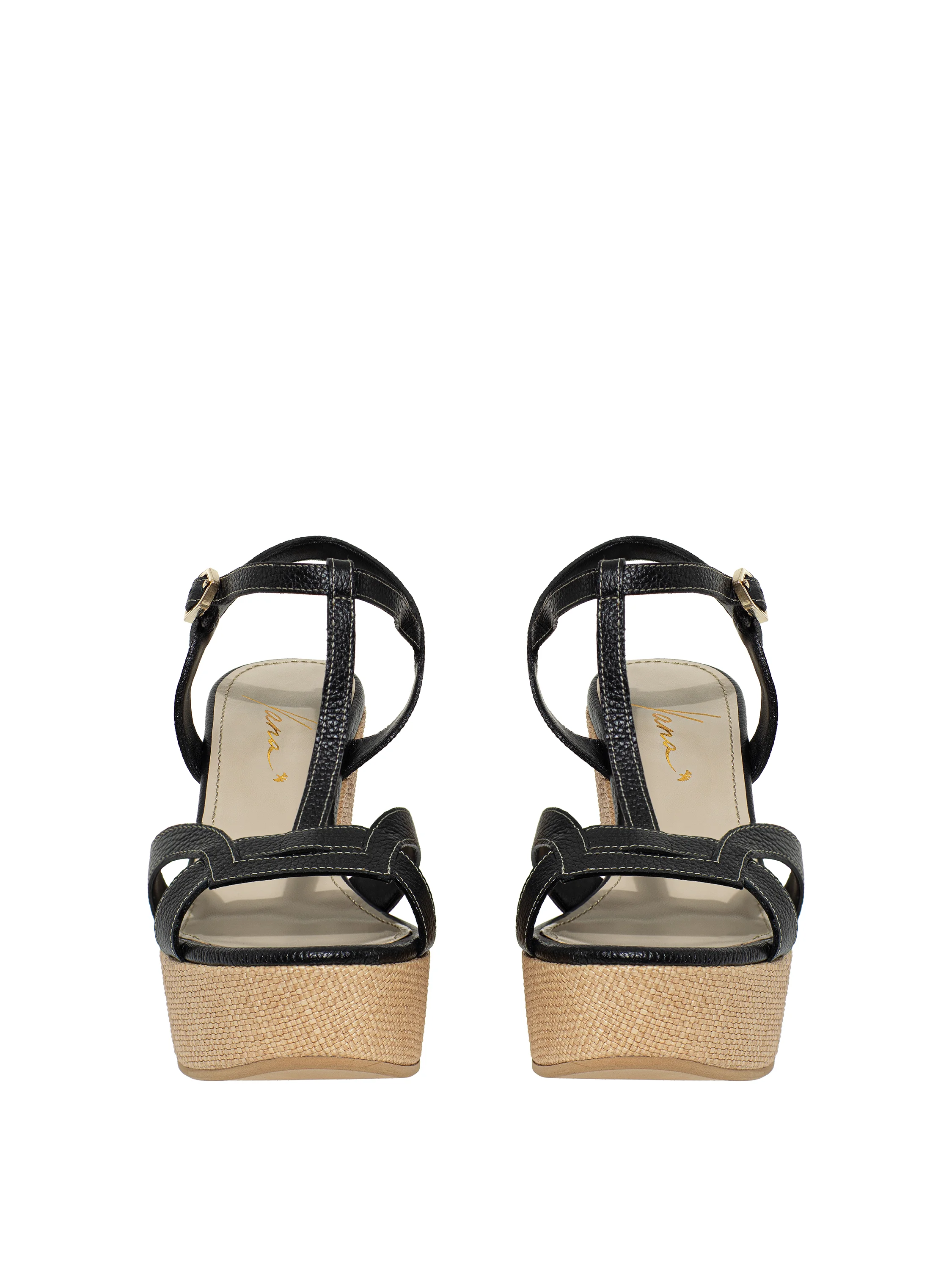 Black Leather Wedge Sandals
