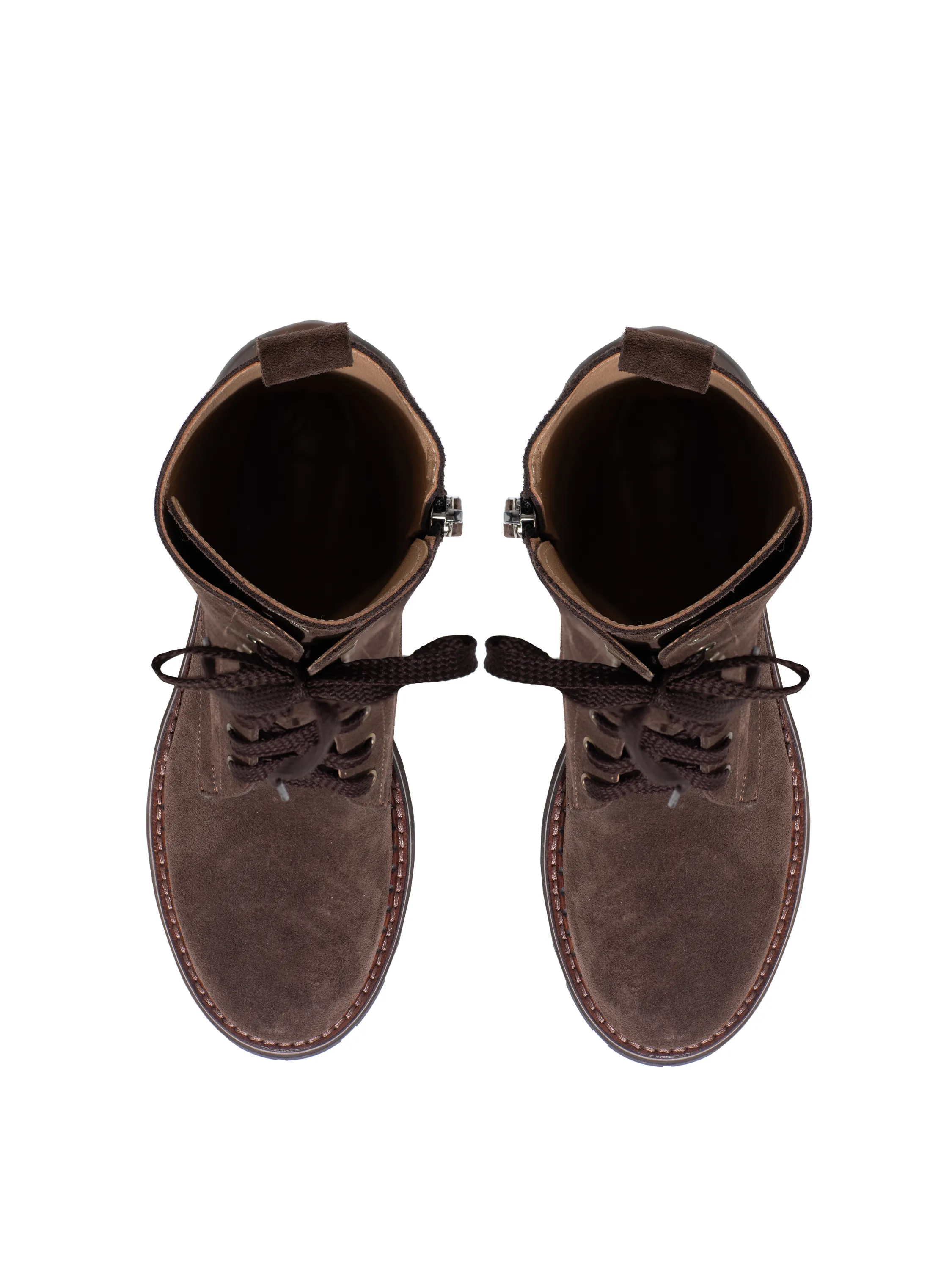High dark brown lace-up boots made of genuine suede will go with everything in your wardrobe and elevate your everyday outfit to a new level. The model is complemented by a pull loop on the shaft to make the boots comfortable to take off.