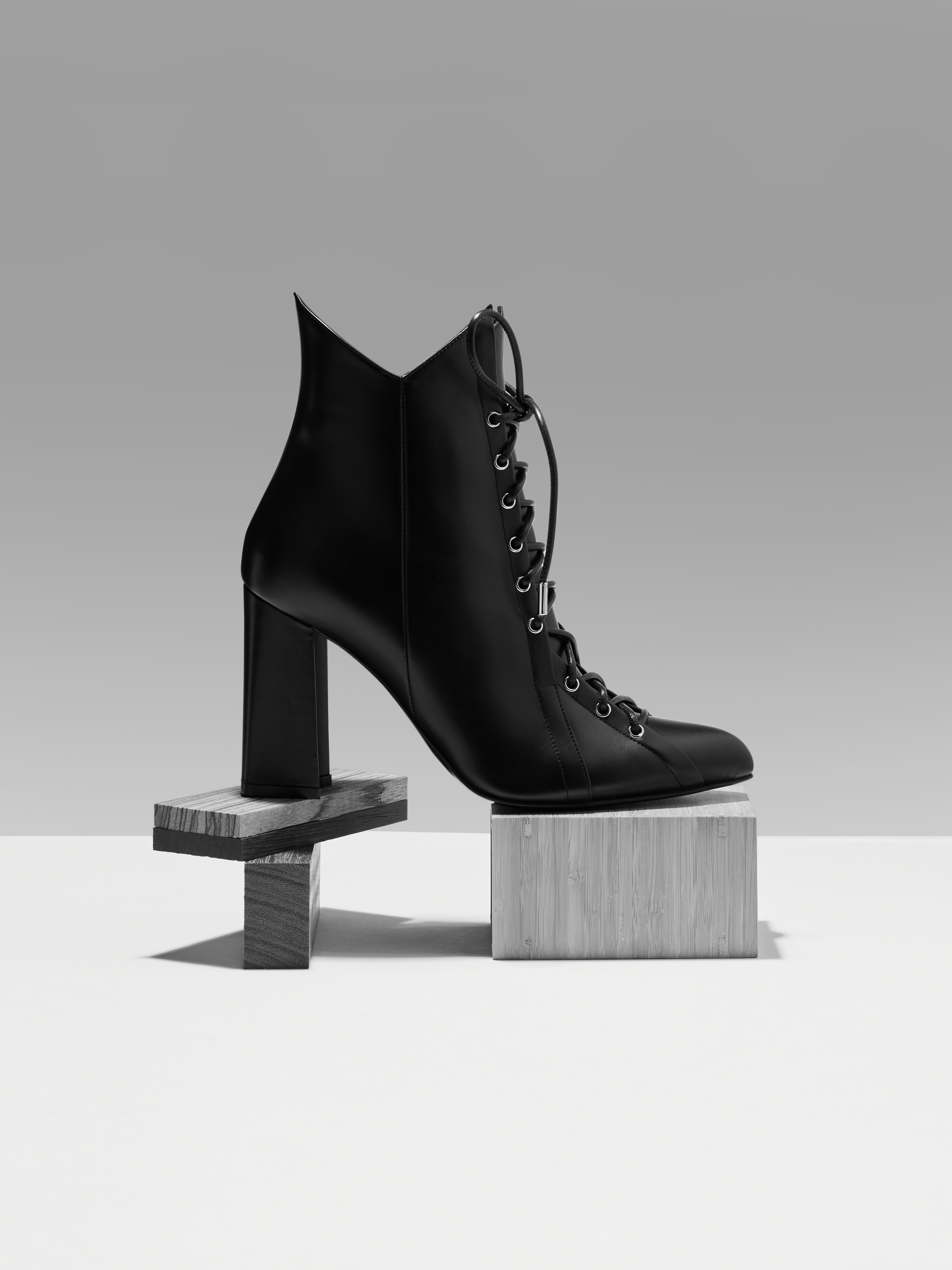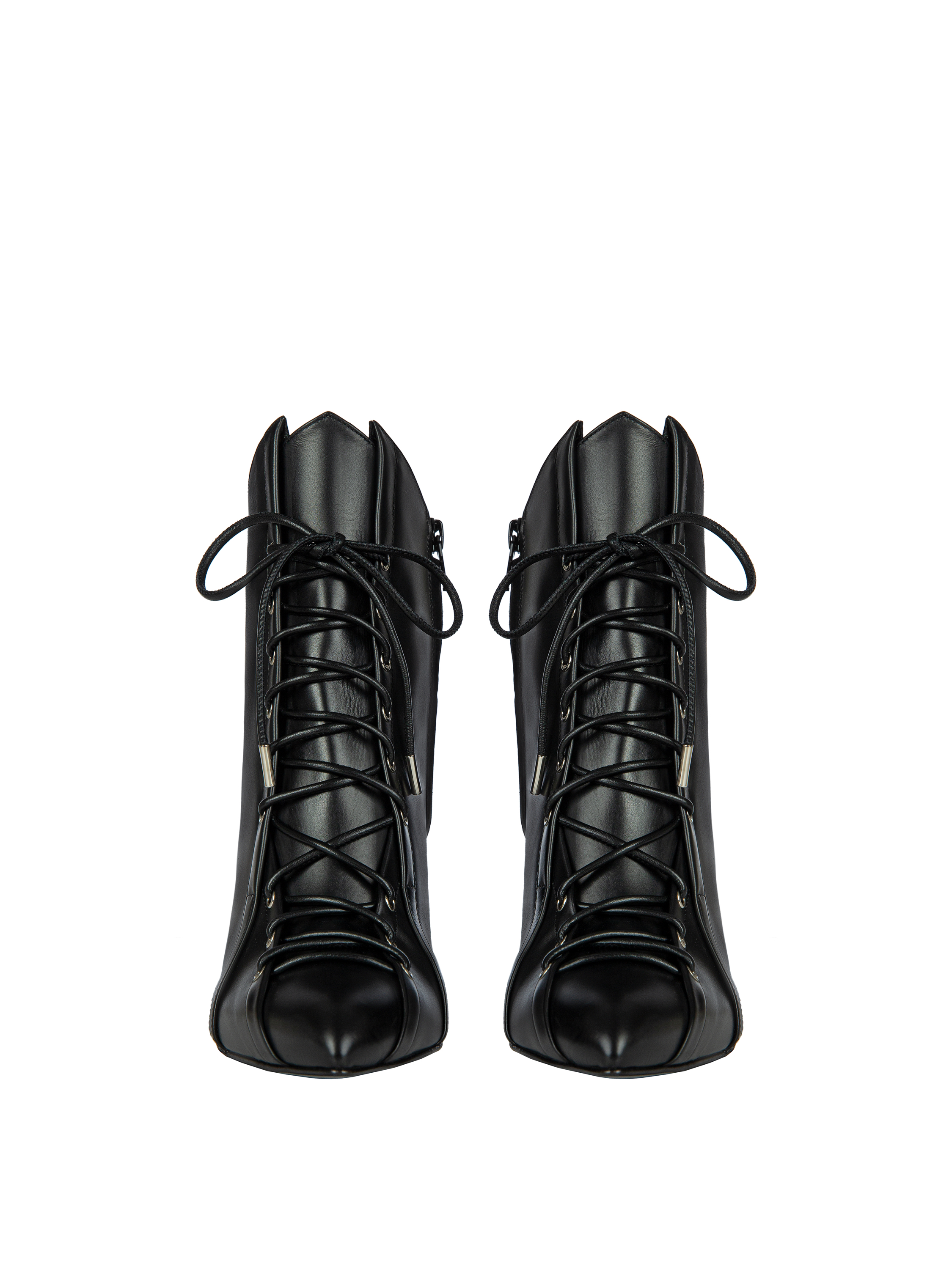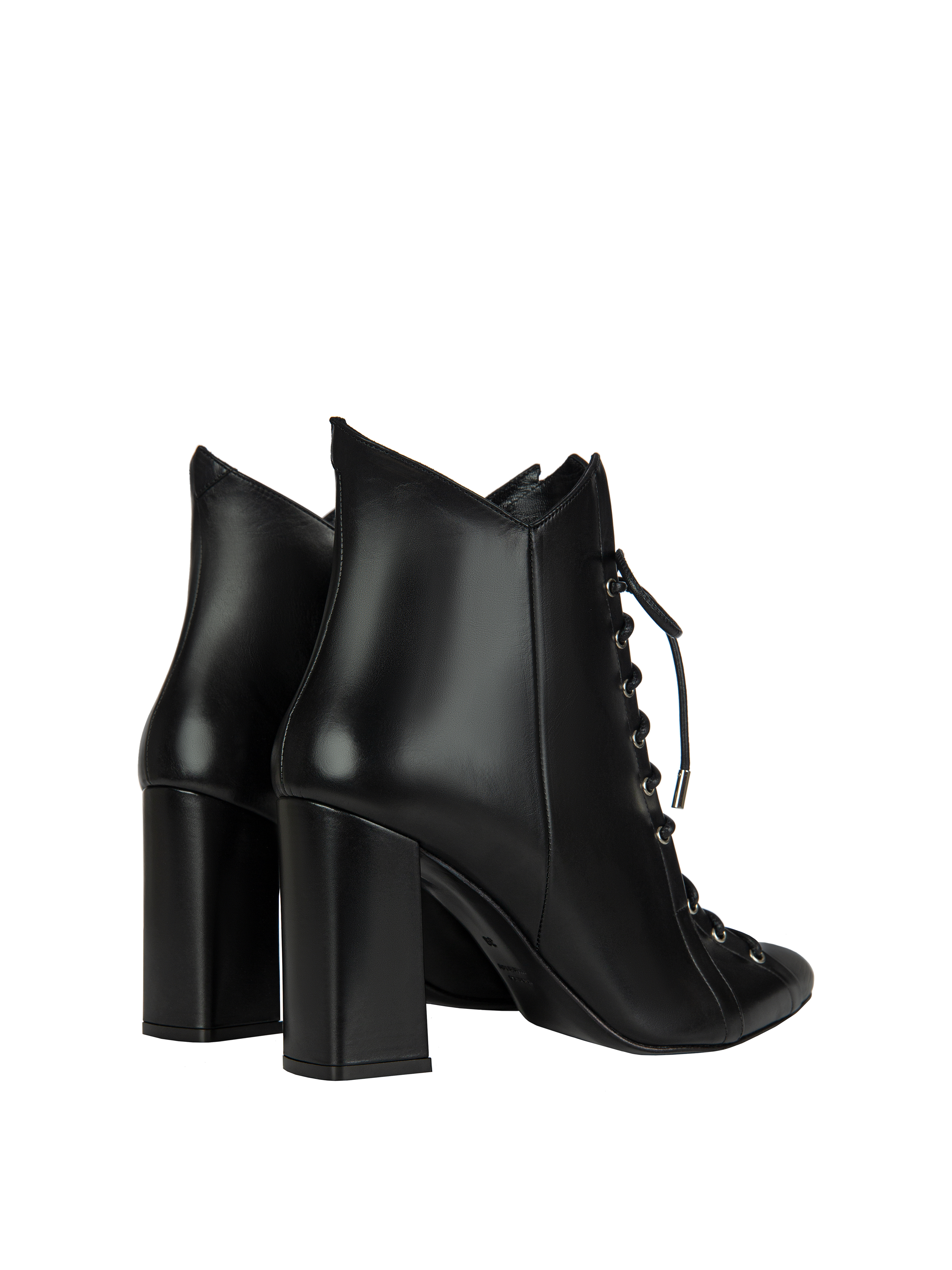 Black Leather Lace-Up Ankle Boots