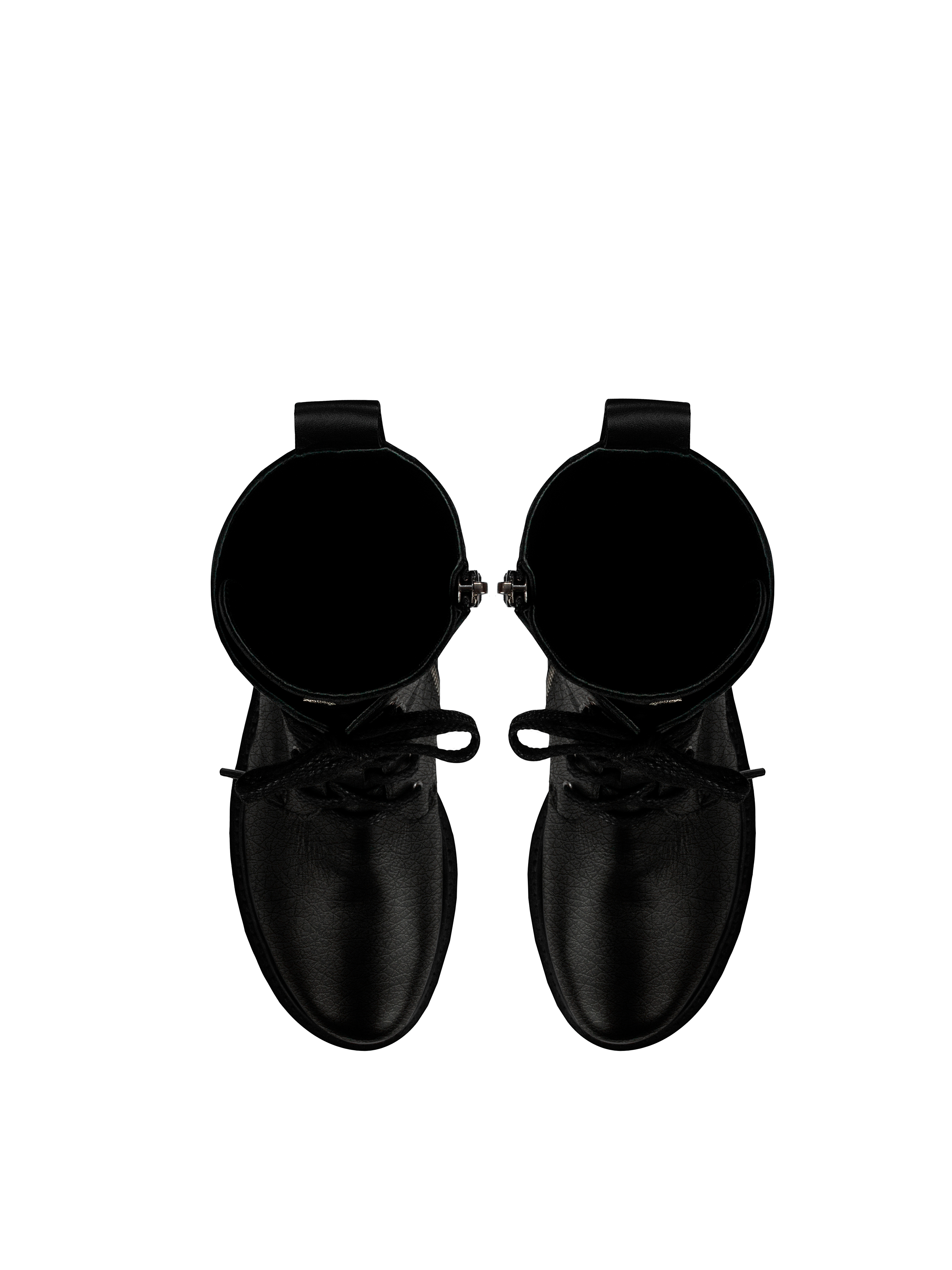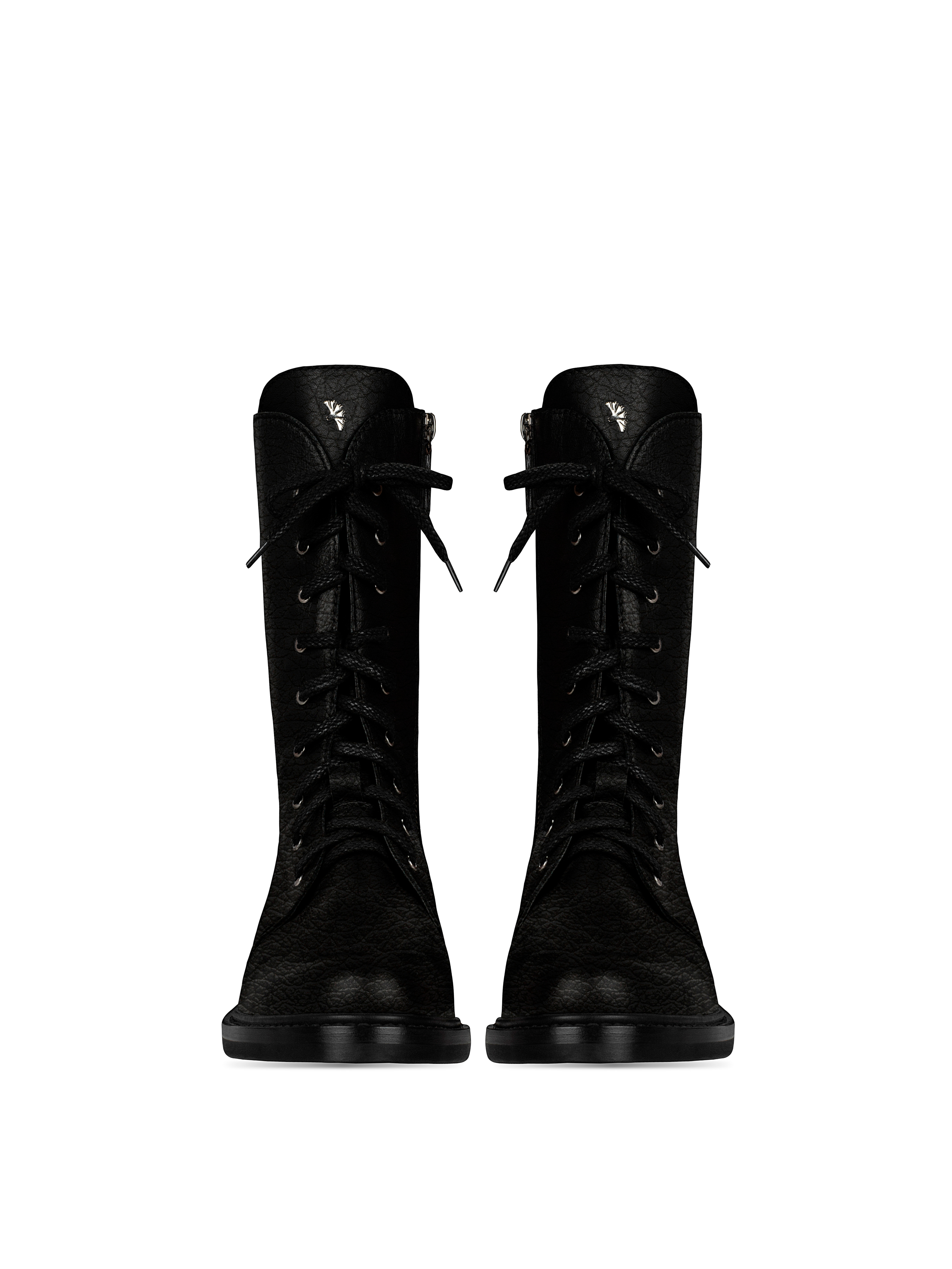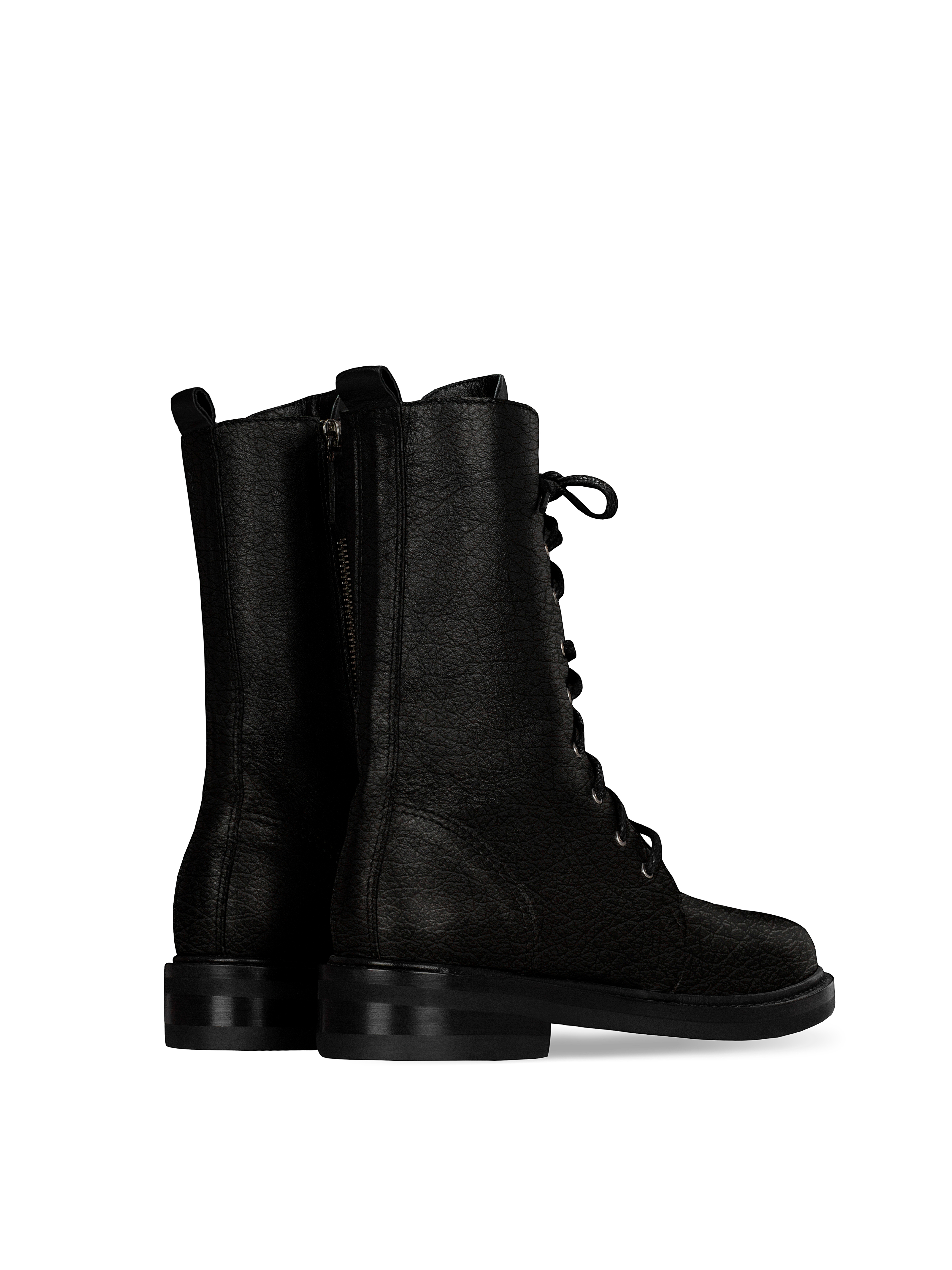 High black lace-up boots made of genuine textured leather will go with everything in your wardrobe and elevate your everyday outfit. The model is complemented by a pull tab on the shaft to make the boots easy to take off.