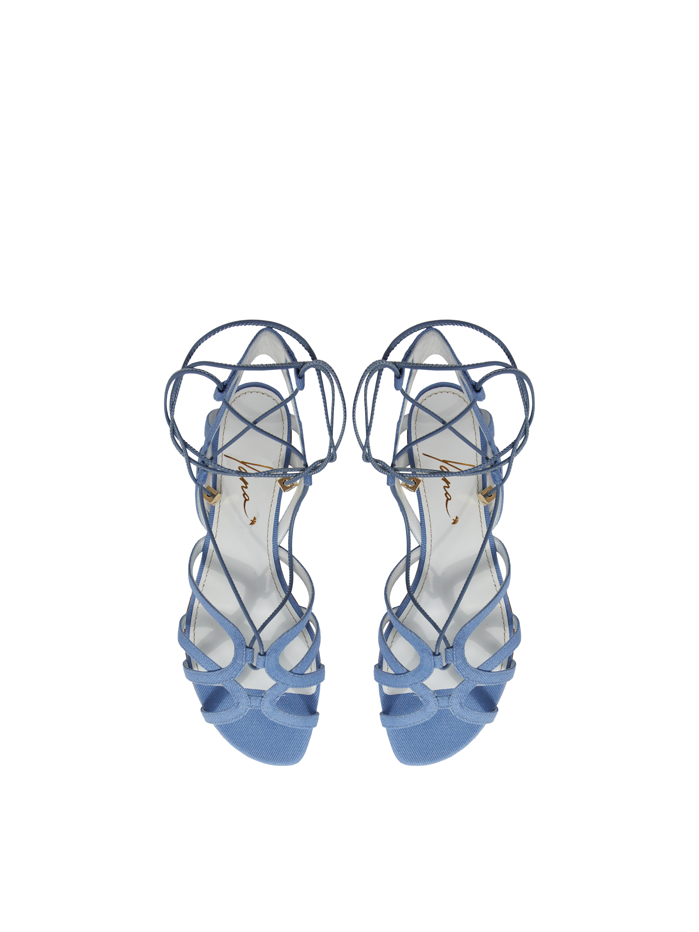 The low gladiator sandals are made of blue denim and soft genuine leather. The short criss-cross lacing will accentuate the slimness of your legs, while the small stacked heel will prevent fatigue after long walks.