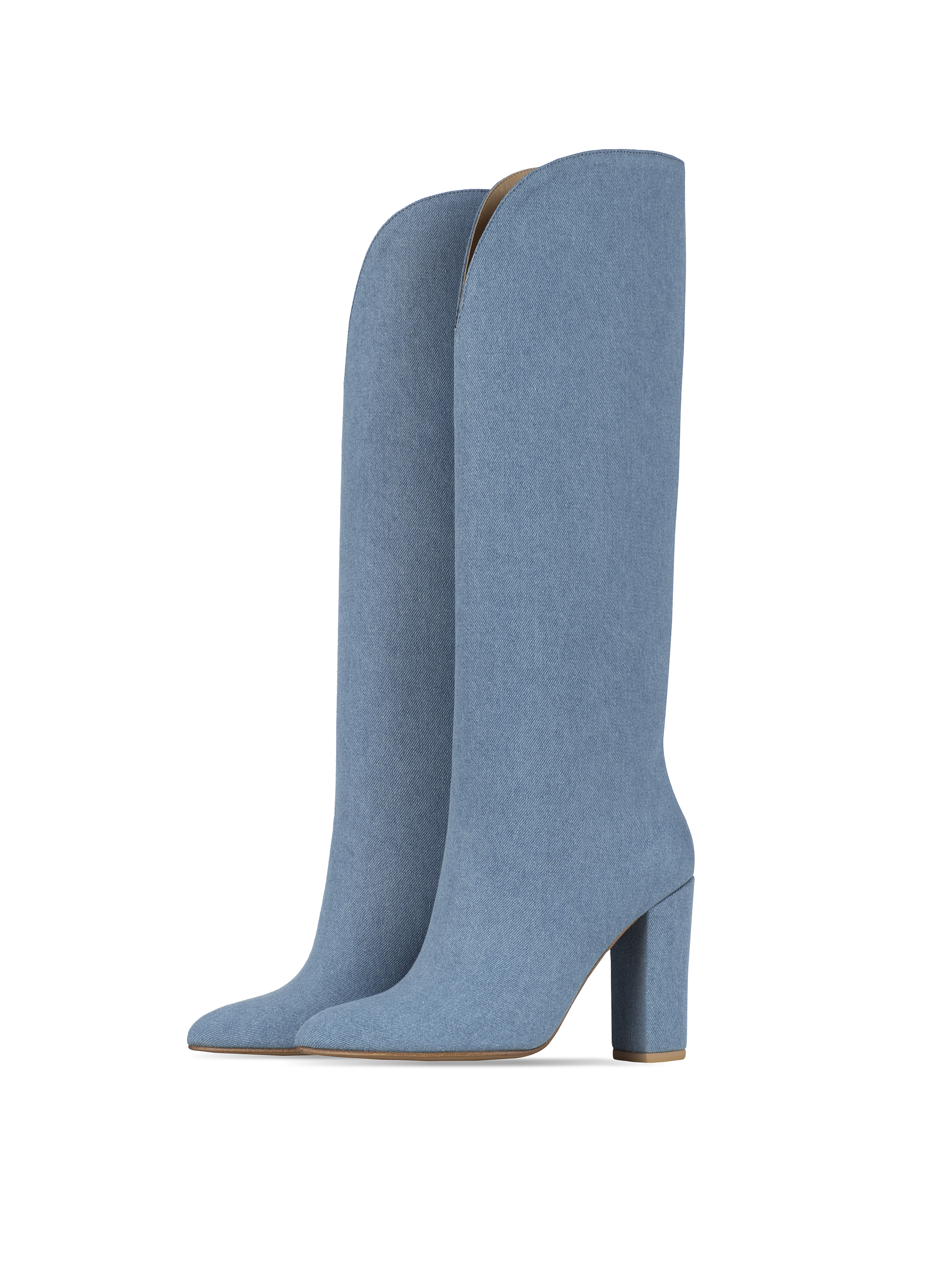 Light Blue Denim Heeled Tall Boots