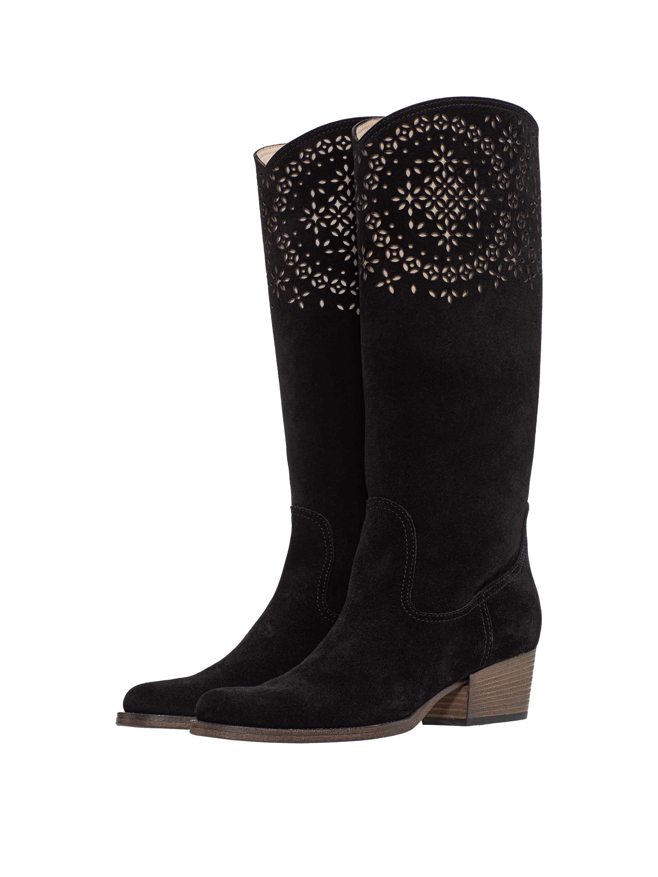 Black suede cowboy boots with perforation