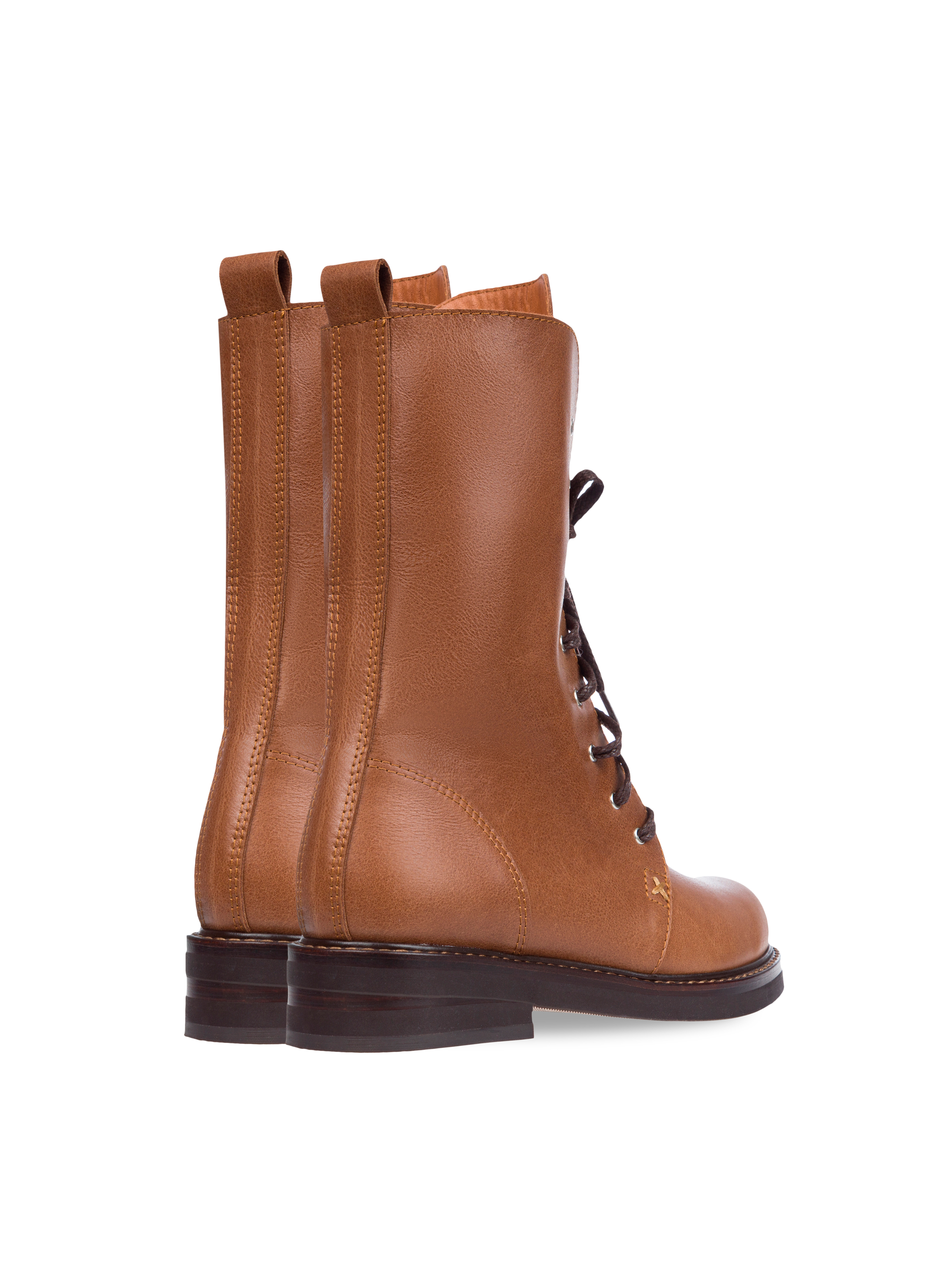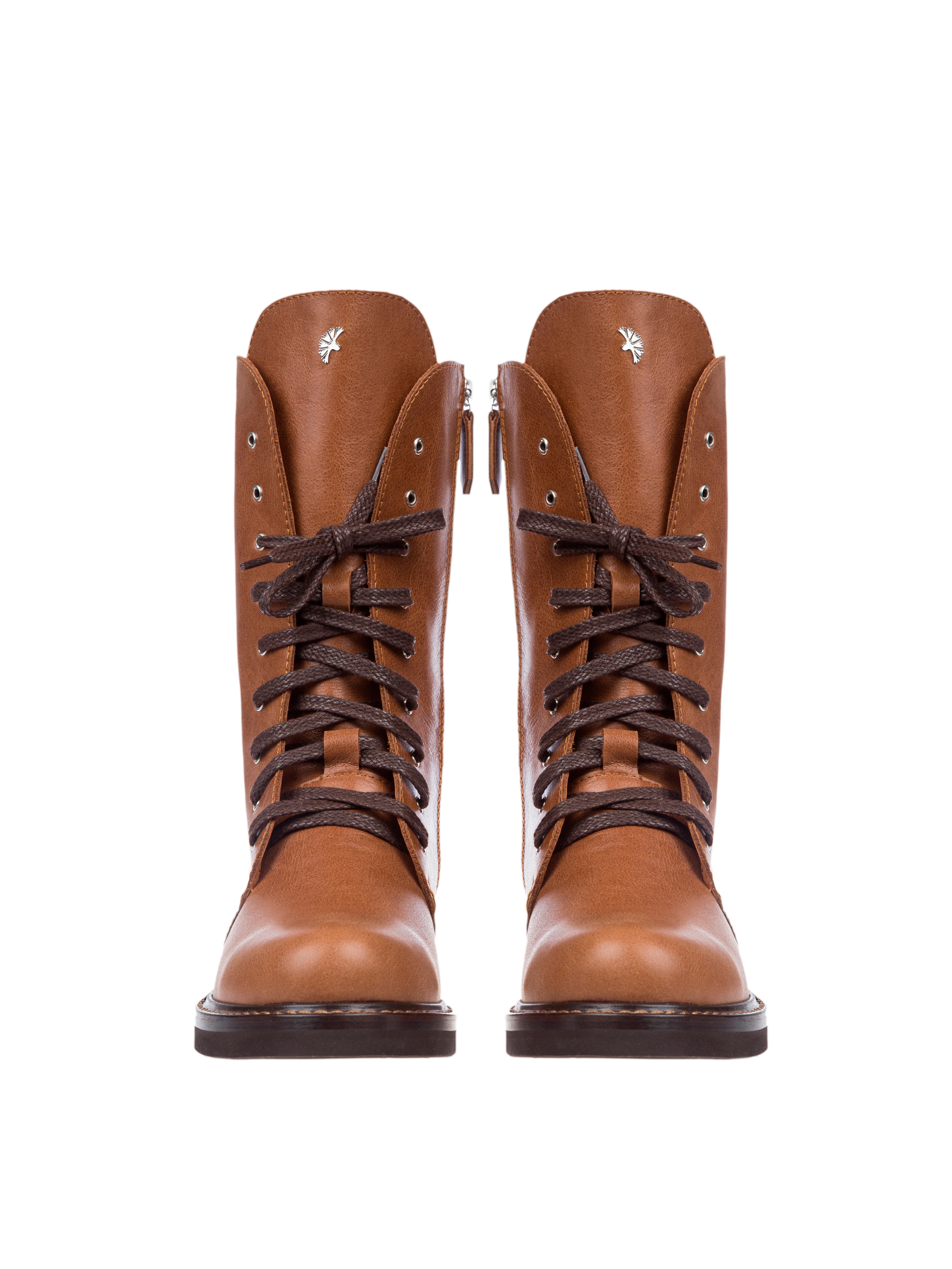 High brown lace-up boots made of smooth genuine leather will pair well with everything in your wardrobe and elevate an everyday outfit. The model is complemented by a loop on the shaft to make the shoes comfortable to take off.