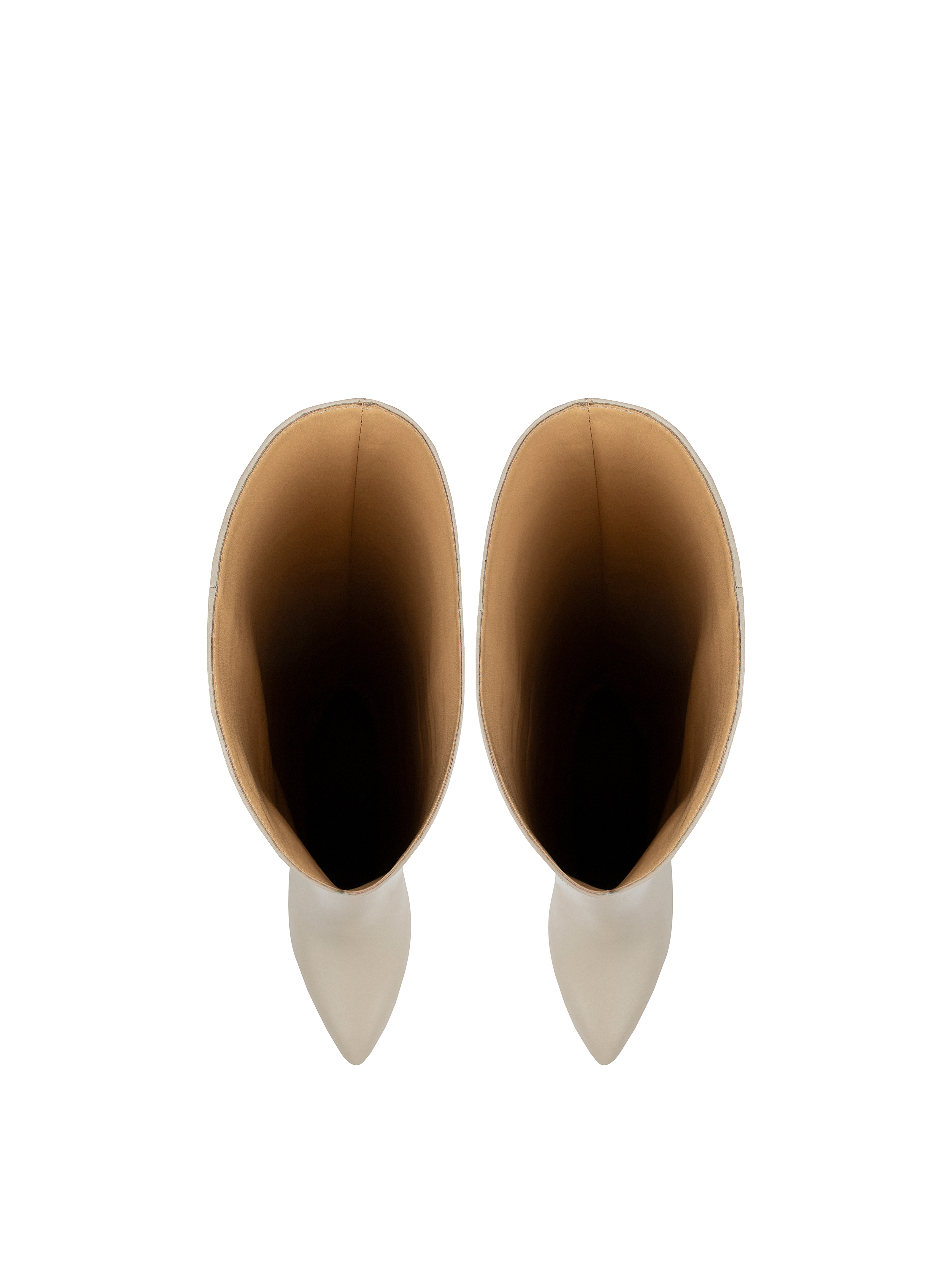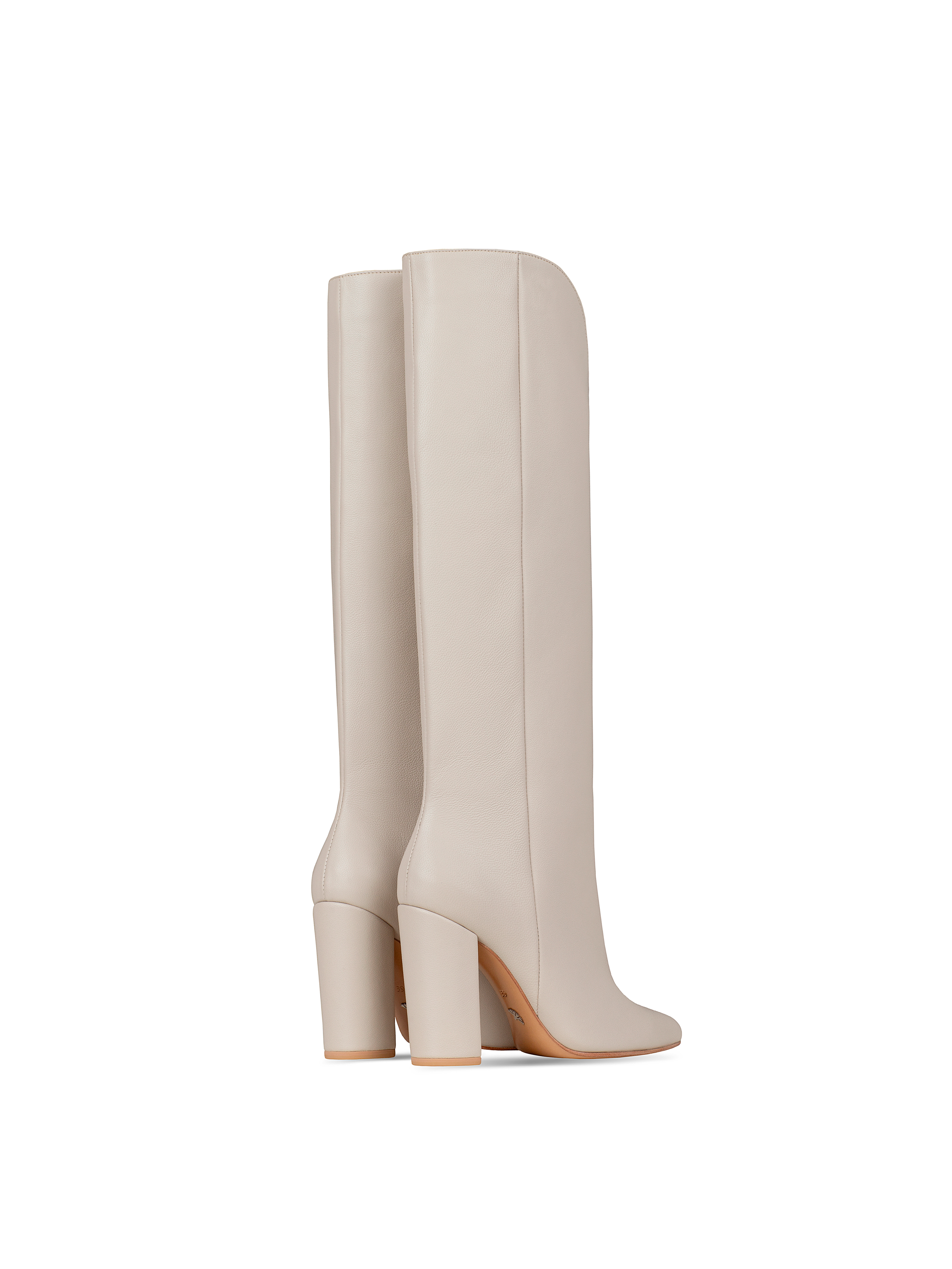 Eggshell Leather Heeled Tall Boots