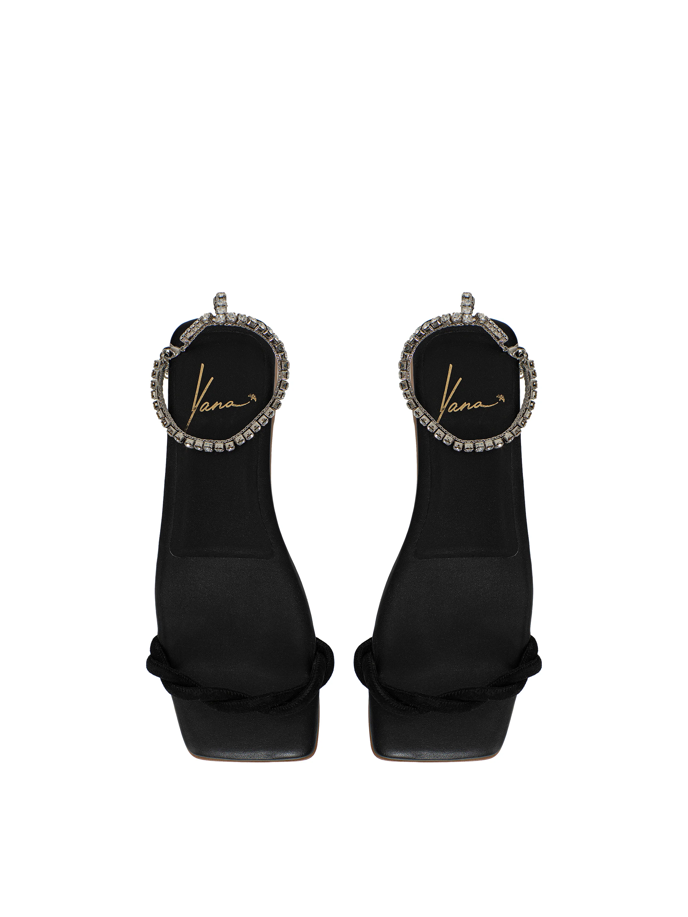 Black Rhinestones Leather Sandals