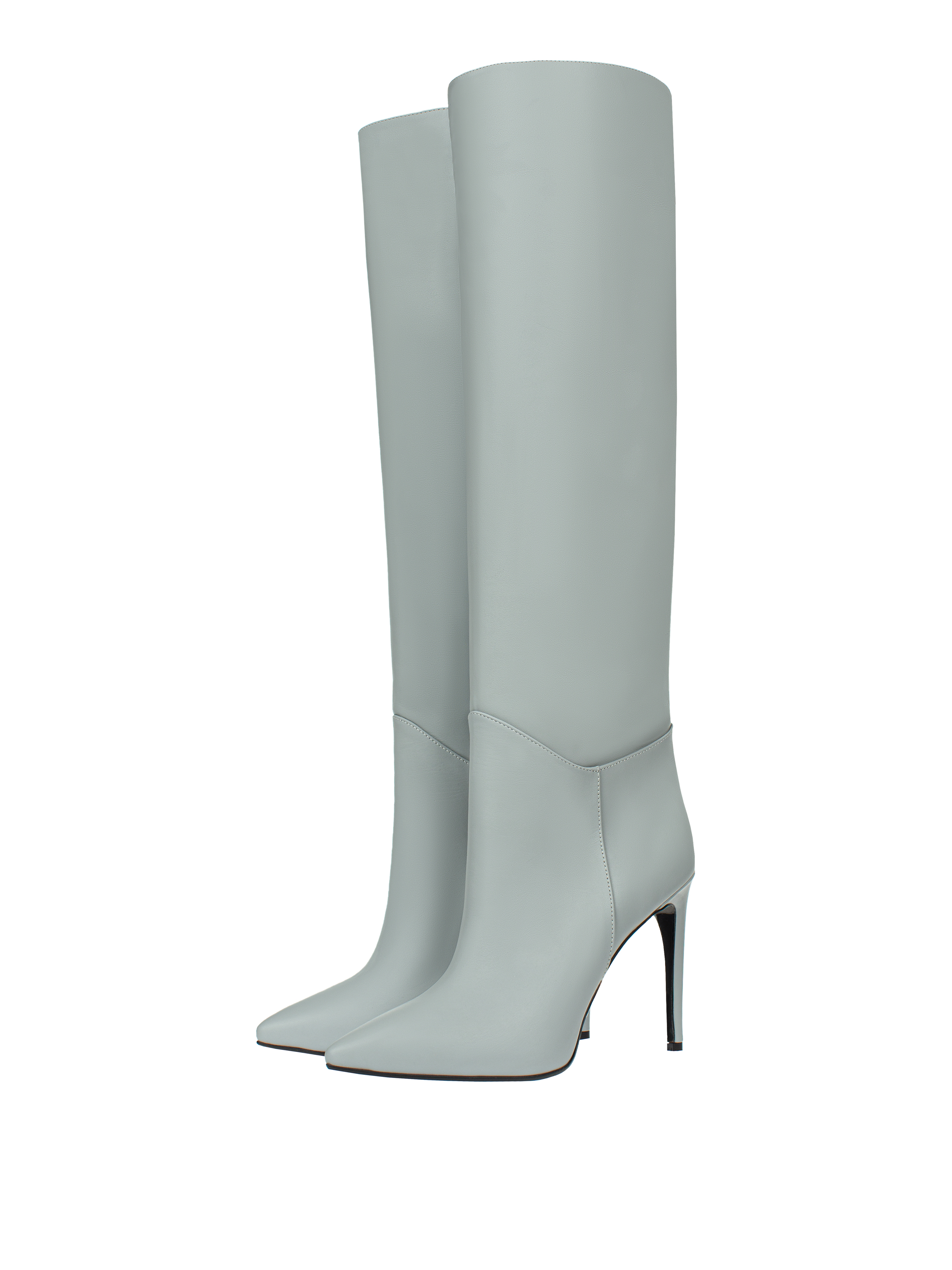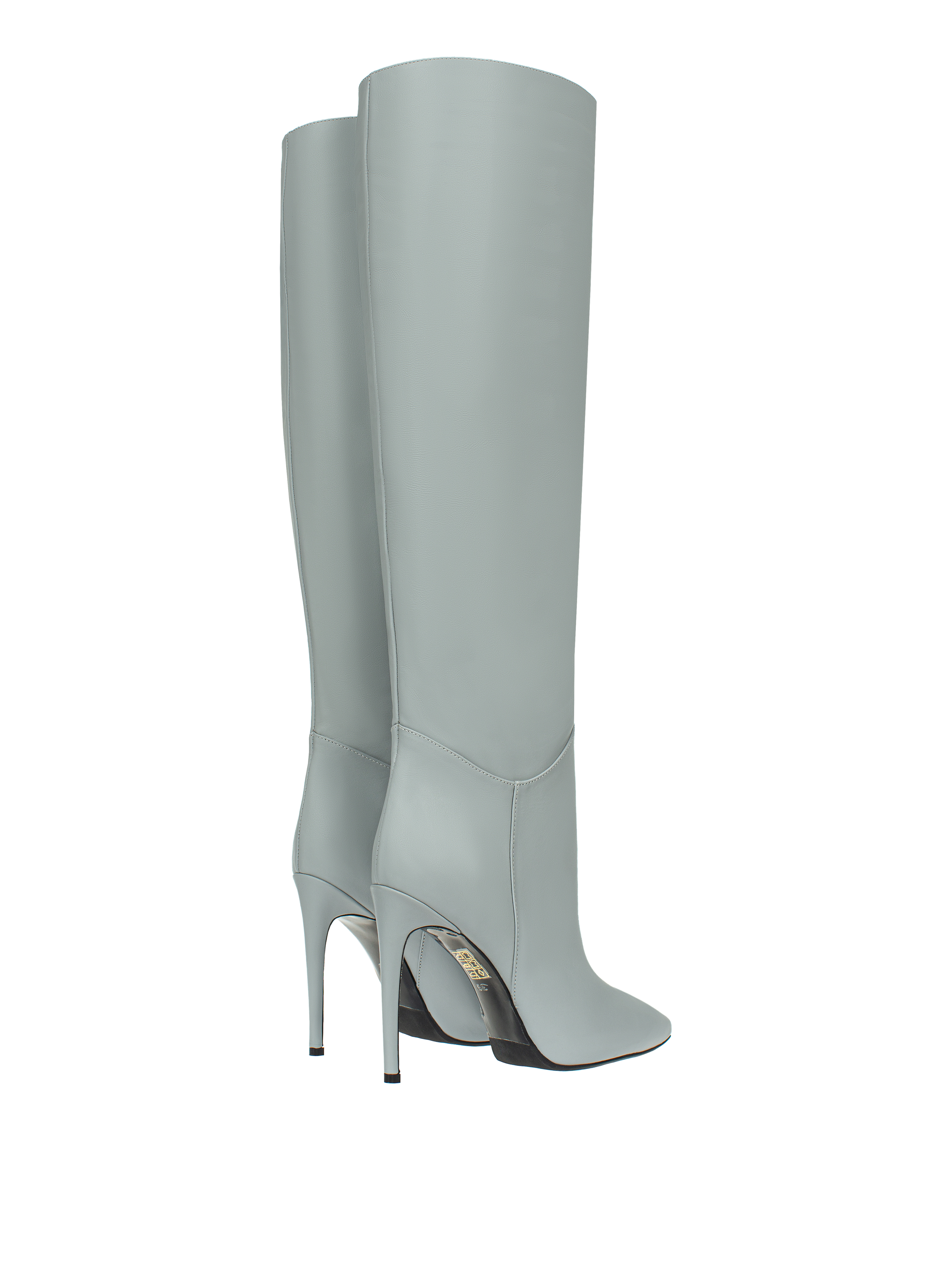 Grey Leather Stiletto Boots