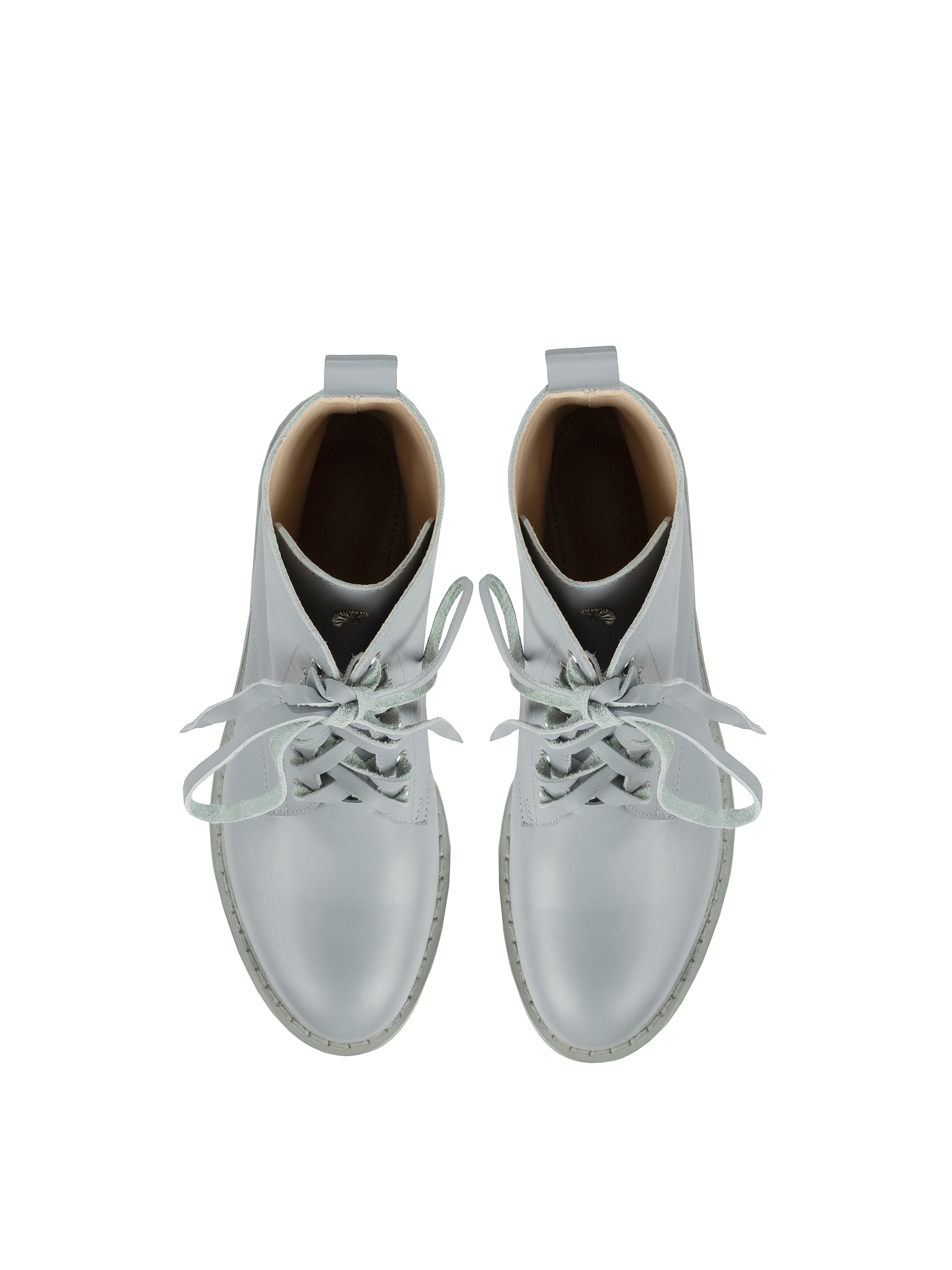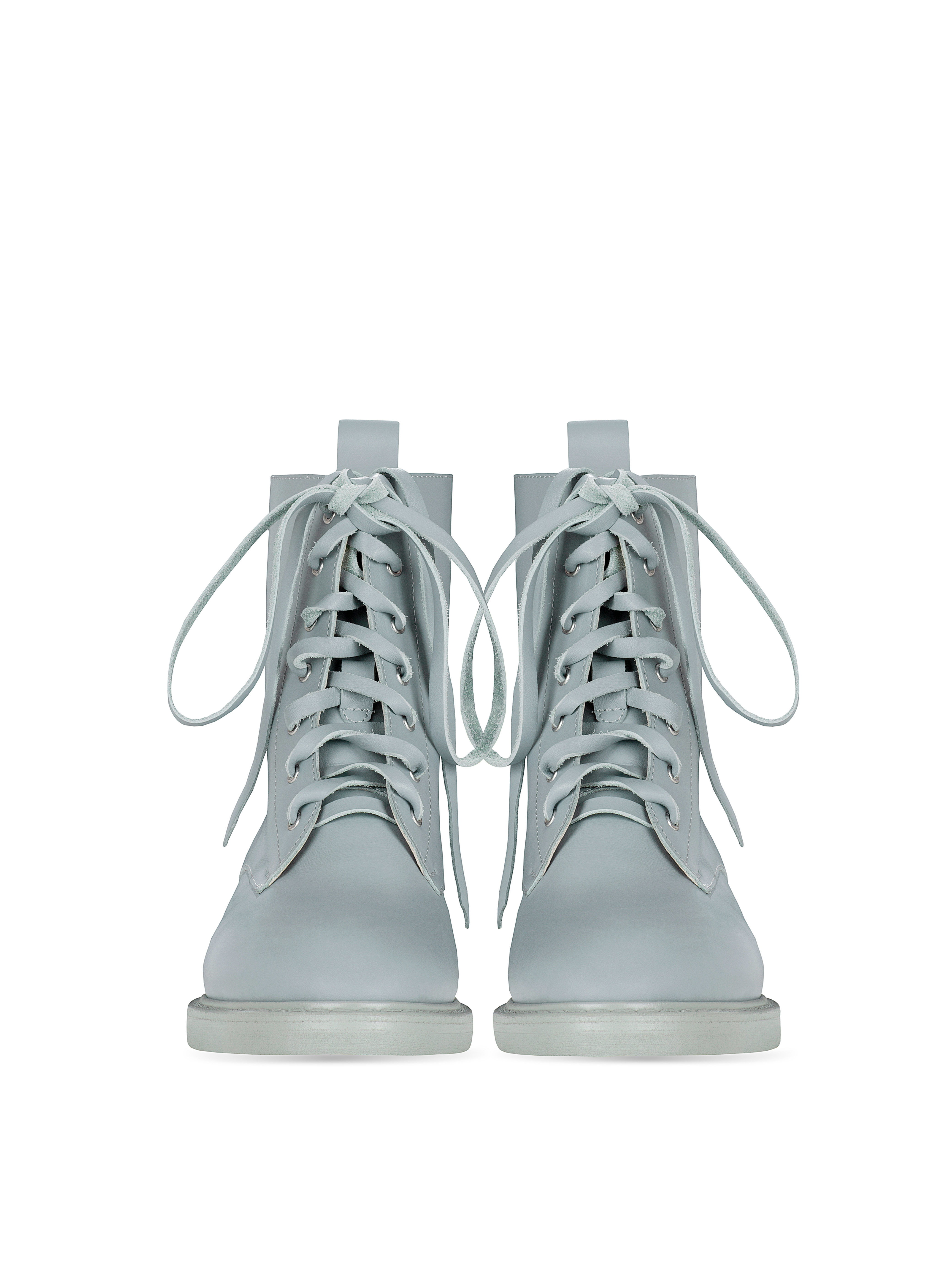 Light blue high boots pair perfectly both with jeans and with your favorite dress. Smooth genuine leather was chosen for the upper. The laces are made of the same material in a matching shade.