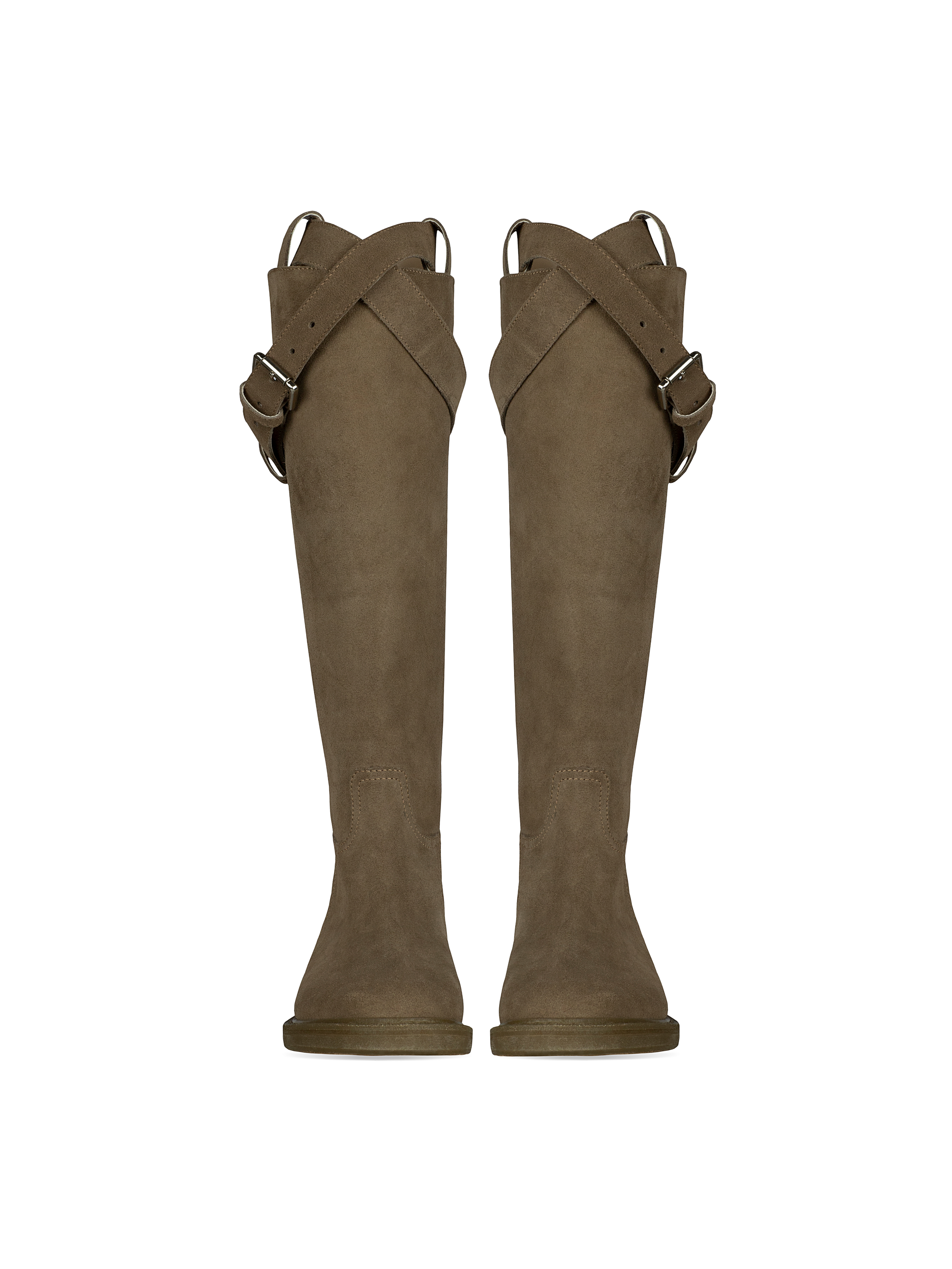 Khaki Buckled Suede Knee Boots