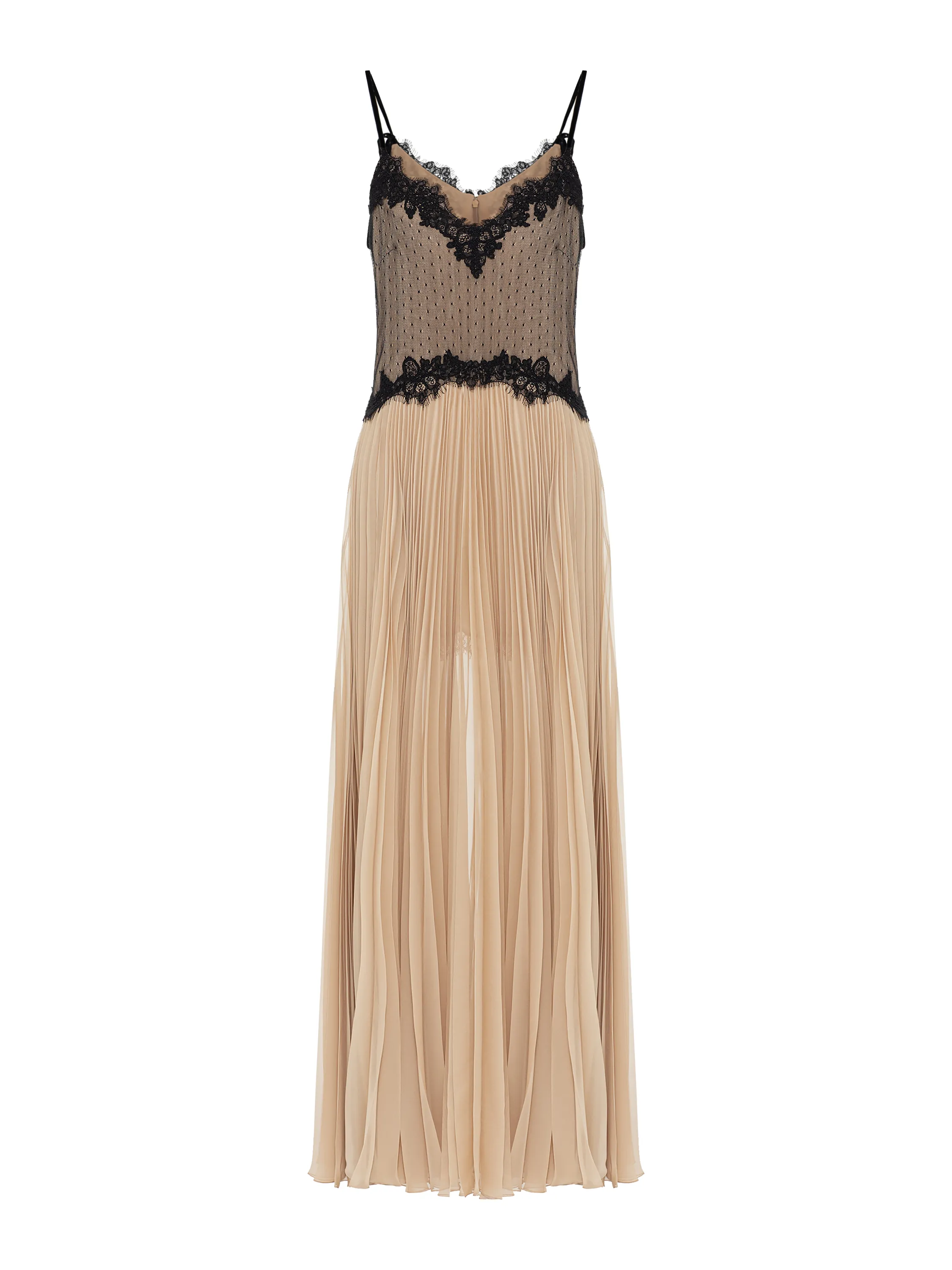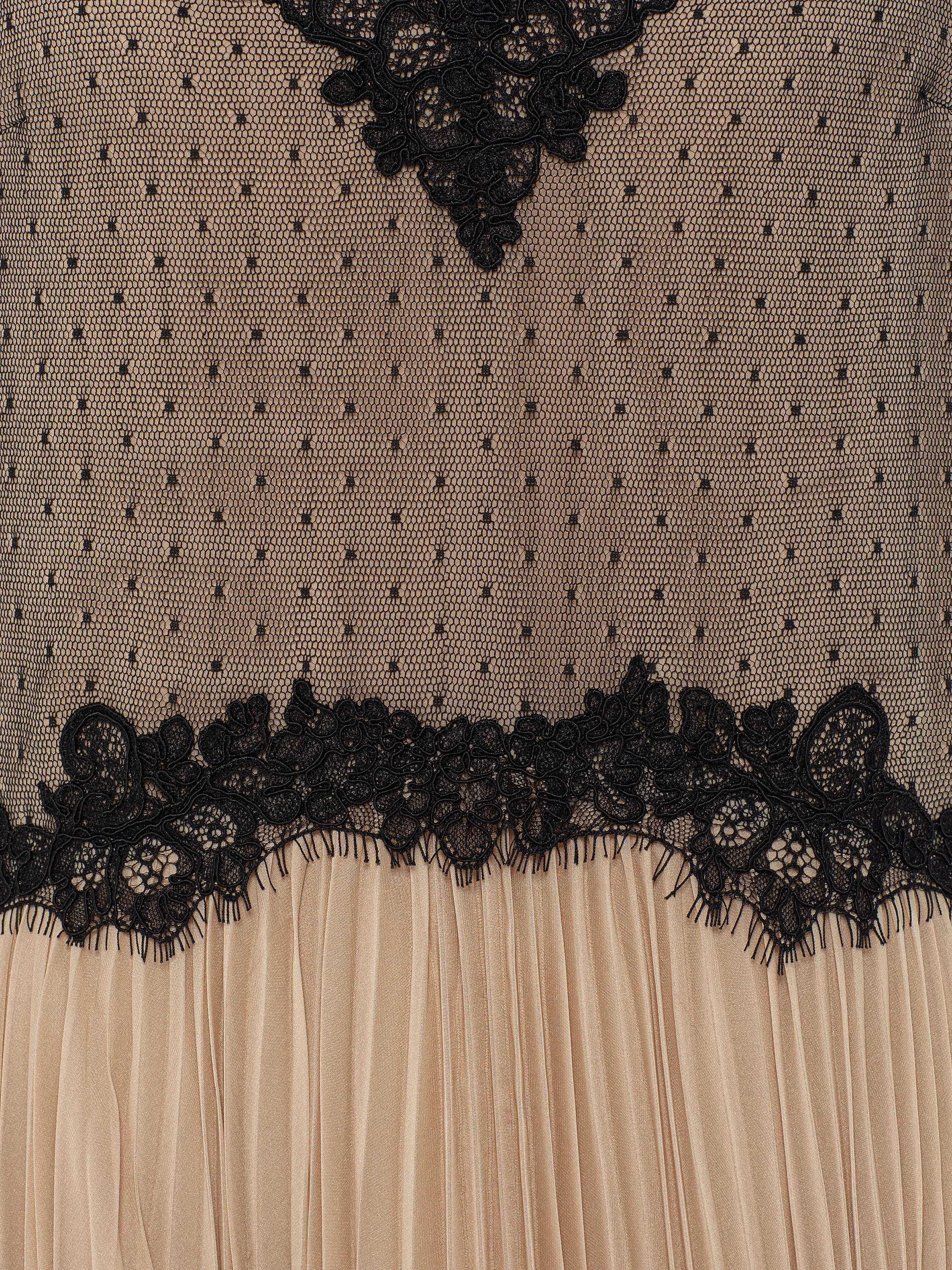 Beige Lace & Plisse Chiffon Midi Dress