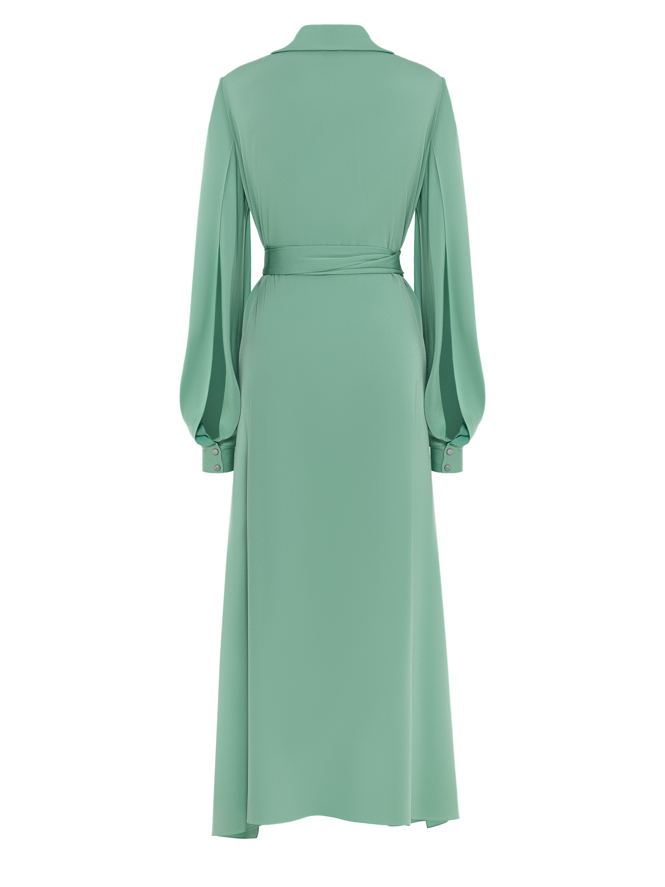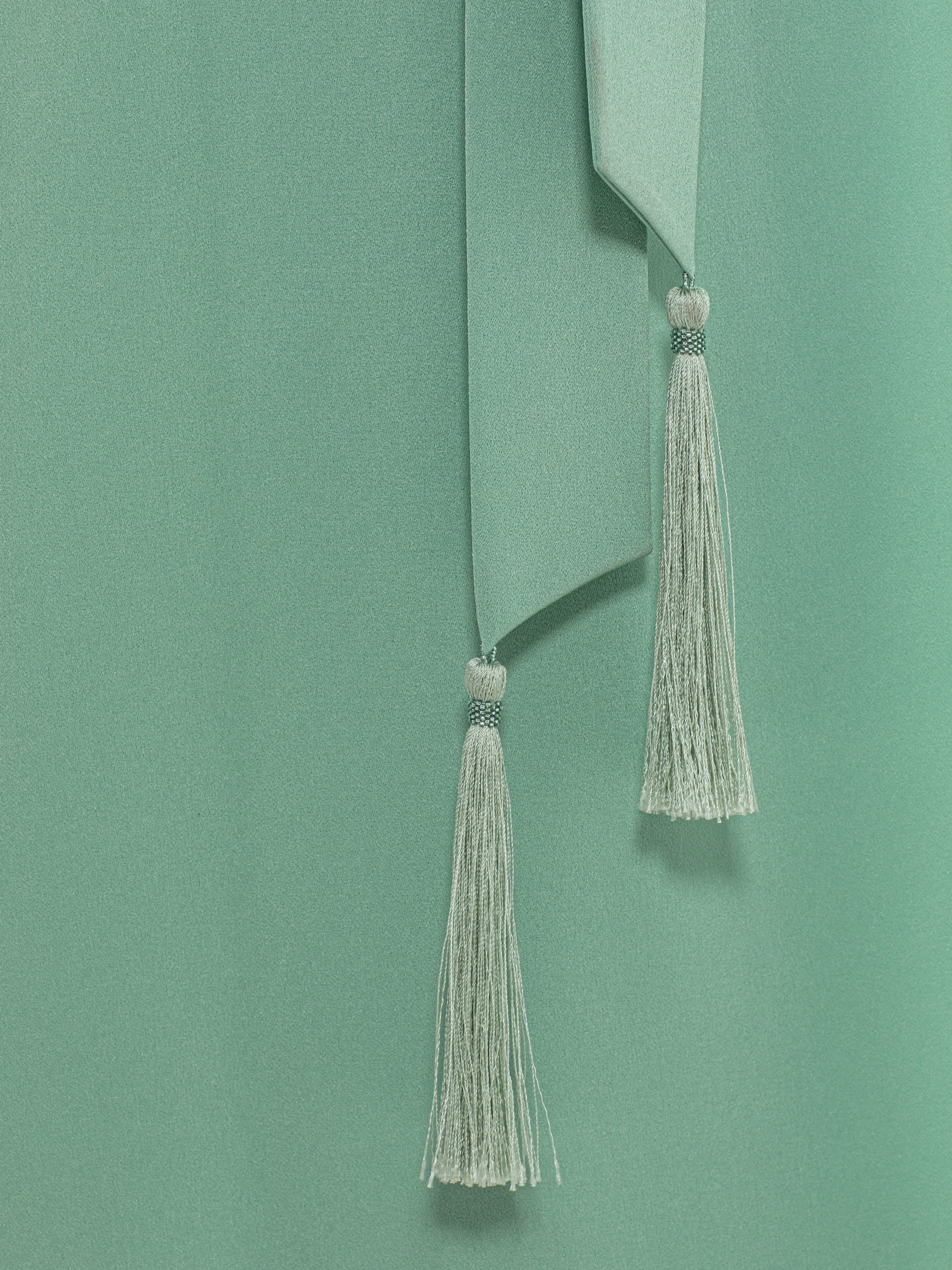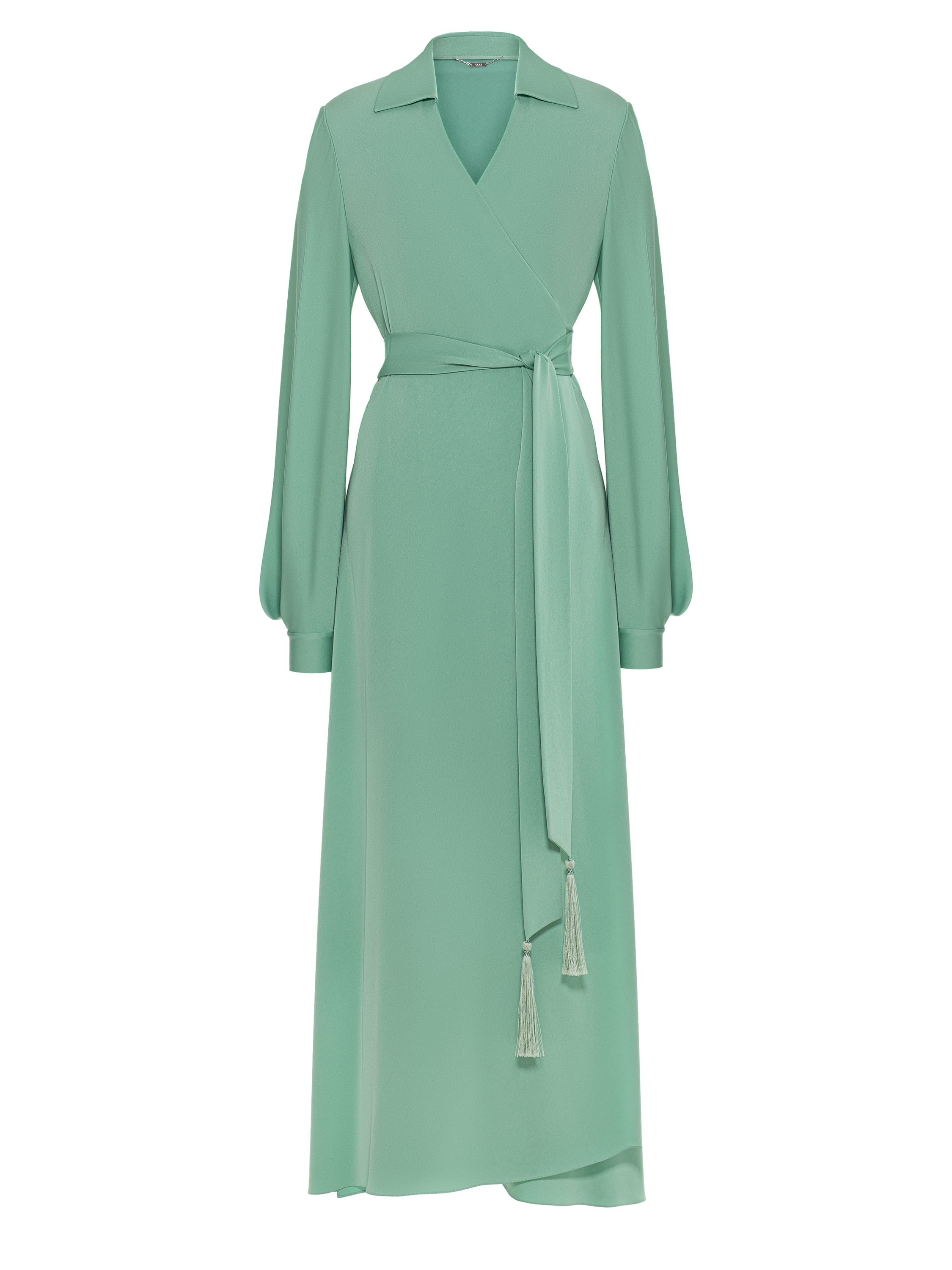 A green midi dress with long sleeves made of viscose. Comes with a belt with tassels that will accentuate the waistline.