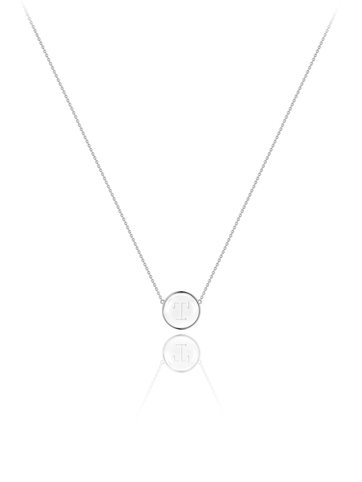 White Gold & Rock Crystal Letter "T" NecklaceItem No.: 111/04W-1612