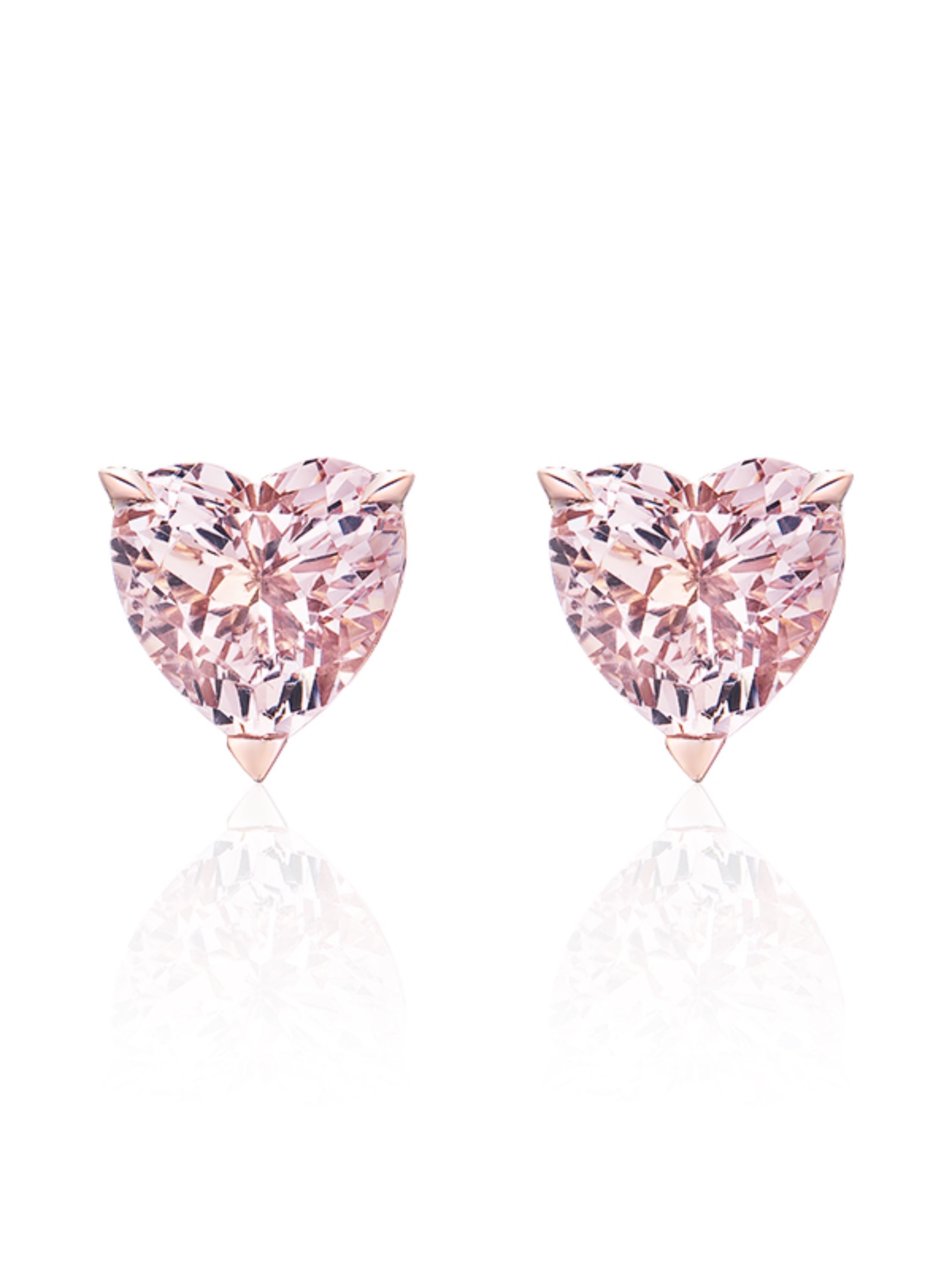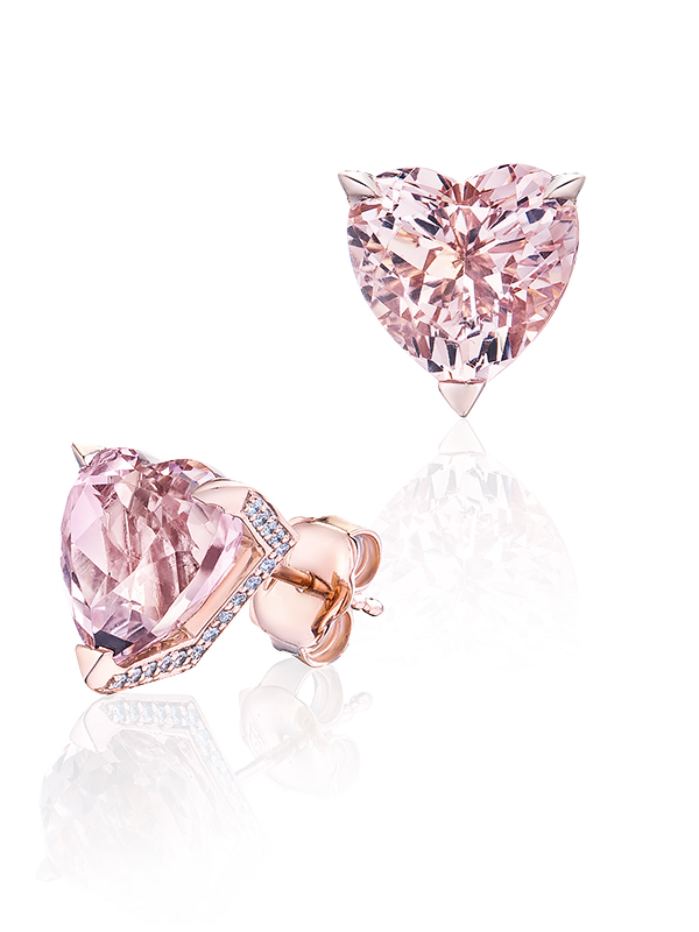 Pink gold stud earrings with heart-cut morganite and round diamonds