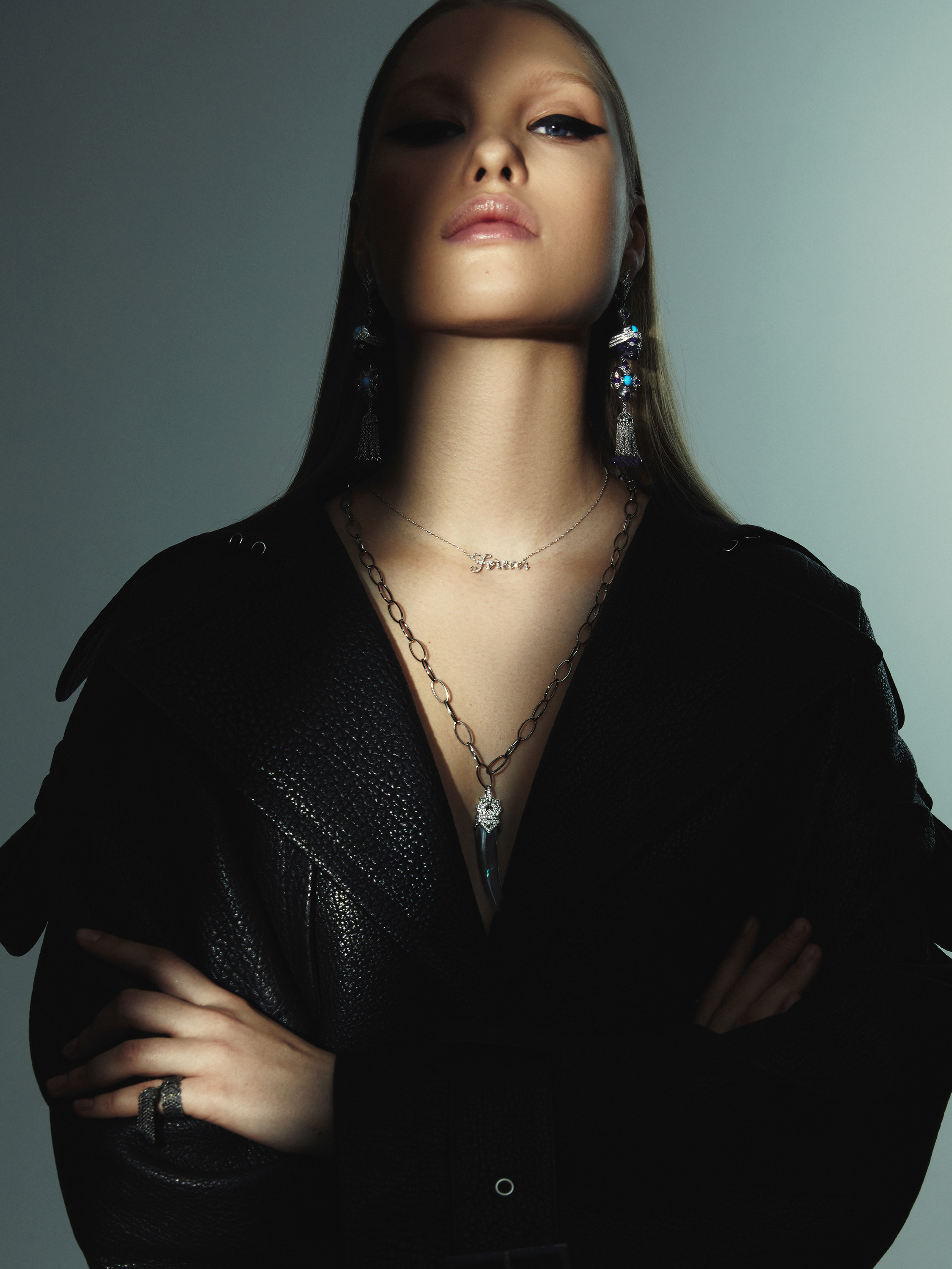 White gold "Forever"pendant necklace with 38 round diamonds (total weight of 0.19 ct).