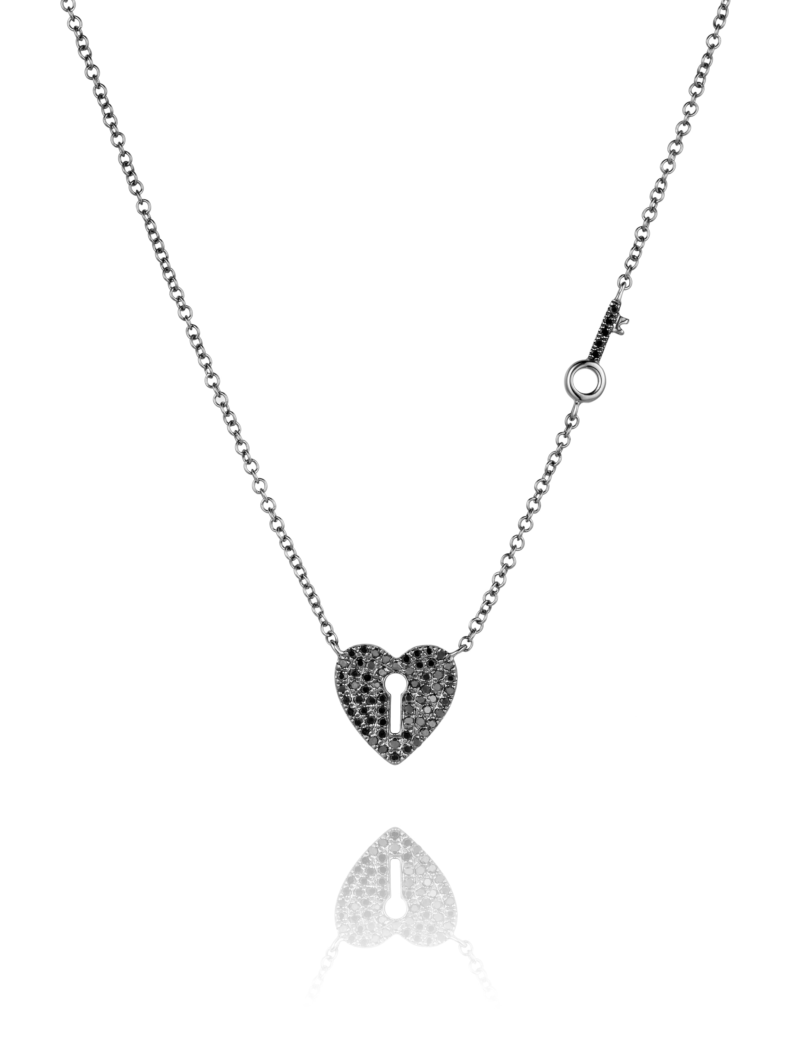 Black gold "Heart" necklace with 66 black 0.16 ct round cut diamonds.