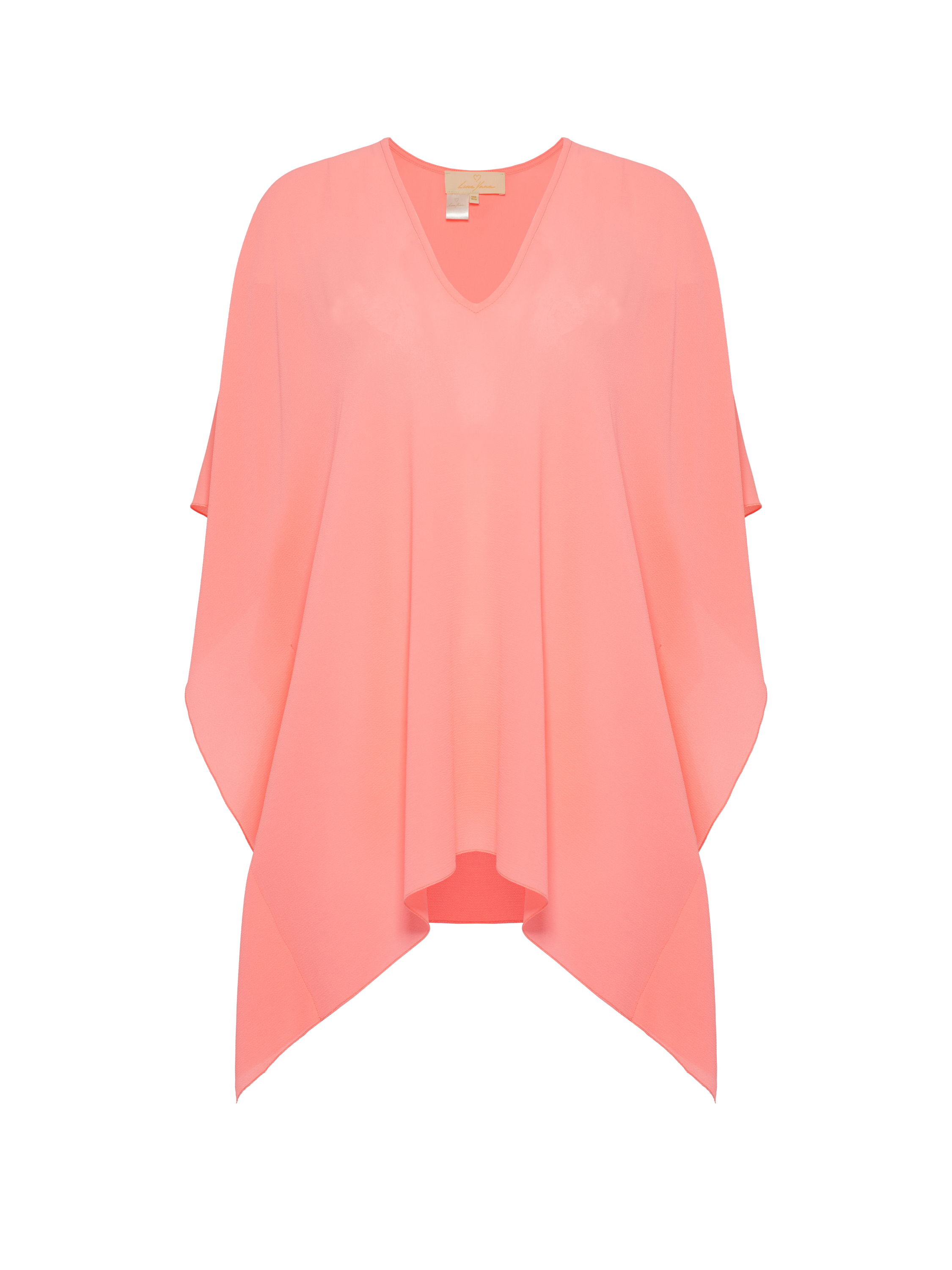 Bright pink tunic with a loose fit is made of light chiffon. The model is complemented by a V-neck and a curved bottom. It remains to put on striped flip-flops and your favorite sunglasses from Like Yana.